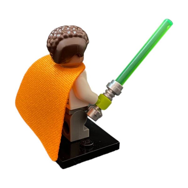 Kai Brightstar wird mit einem maßgefertigten Lichtschwert und einer Jedi-Robe geliefert, um authentische Szenen aus den Star Wars Filmen nachzustellen.