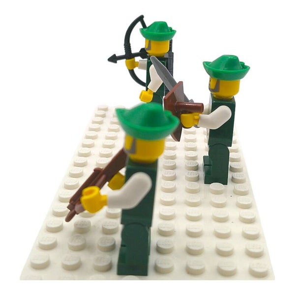 3x LEGO® Minifigur "Waldläufer" mit Schwert, Bogen, Armbrust u. Schild Forestman