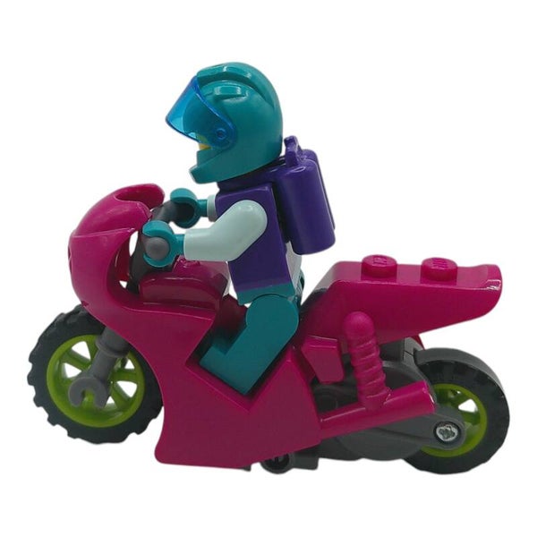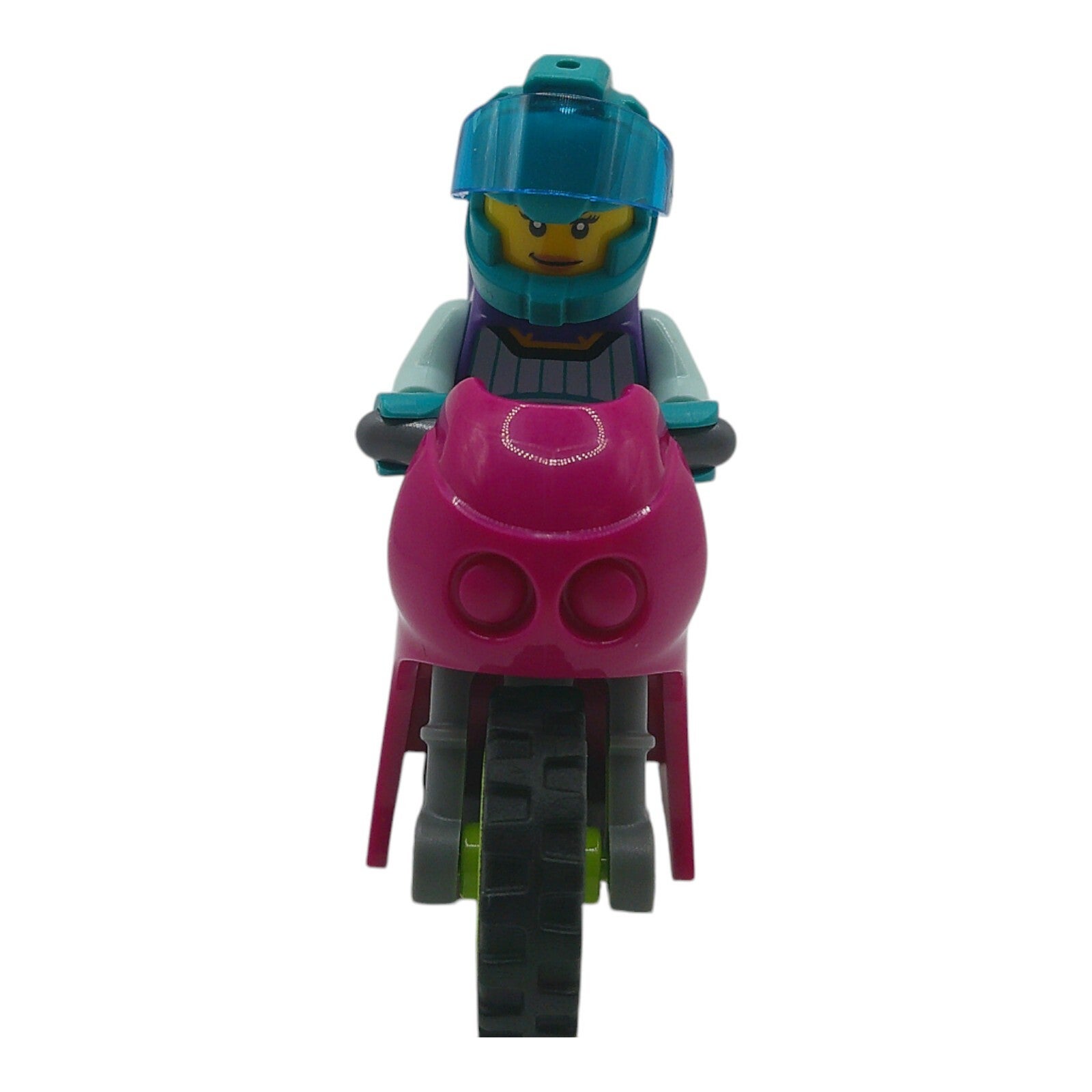 LEGO® City Stuntbike mit rosa Rahmen und grünem Helm – Der Hingucker für waghalsige Stunts!