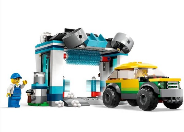 Die LEGO® City Autowaschanlage überzeugt durch eine liebevoll gestaltete Ausstattung, die eine echte Waschstraße nachahmt. Mit rotierenden Bürsten, einem Trockenbereich und weiteren Waschelementen wird das Autowaschen zu einem spaßigen Erlebnis für Kinder ab 6 Jahren.