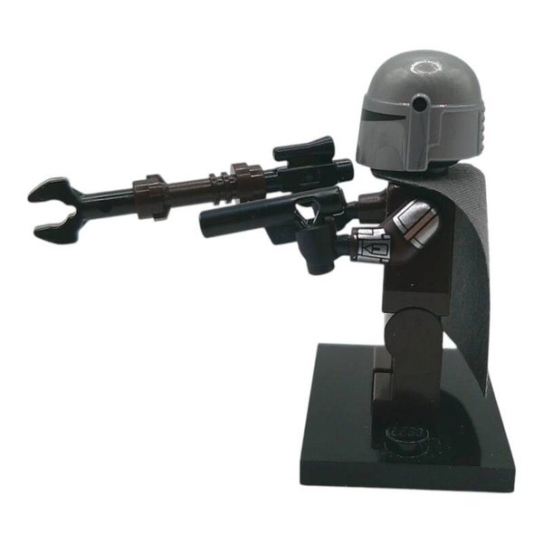 Die Minifigur des Mandalorianers beeindruckt mit ihrem detailgetreuen Design, einschließlich der ikonischen Beskar-Rüstung und dem charakteristischen Helm. Die realistische Gestaltung lässt die Figur wie direkt aus der Serie erscheinen.