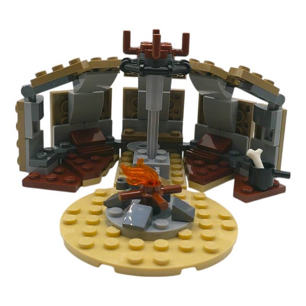 Erwecken Sie die Atmosphäre von Tatooine mit der LEGO® Star Wars™ "Tusken-Hütte mit Lagerfeuer" aus Set 75299 "Ärger auf Tatooine" zum Leben! Dieses Modell bietet eine authentische Szenerie, die sich hervorragend als Ergänzung Ihrer LEGO® Star Wars™ Welt eignet.