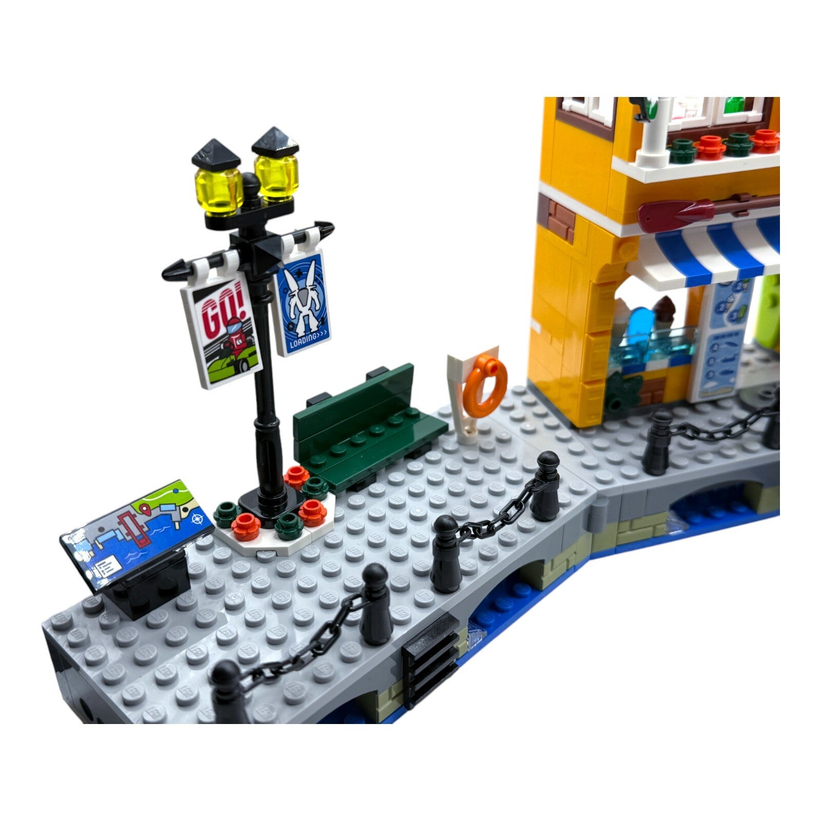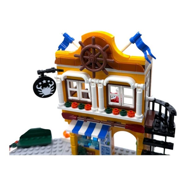 Das Gebäude verfügt über einen Laden und ein Restaurant, die das geschäftige Hafentreiben ergänzen und für eine realistische LEGO® City Kulisse sorgen.