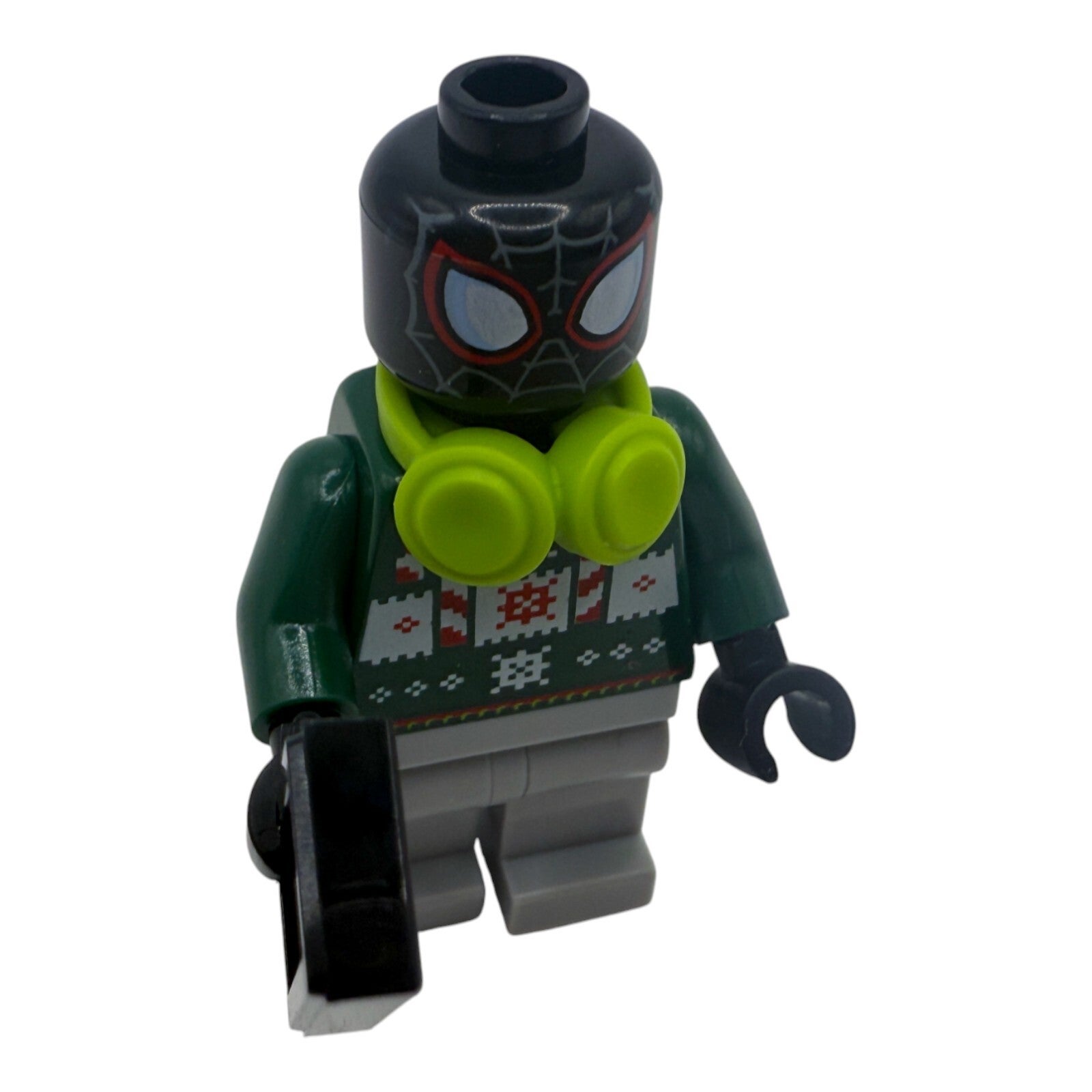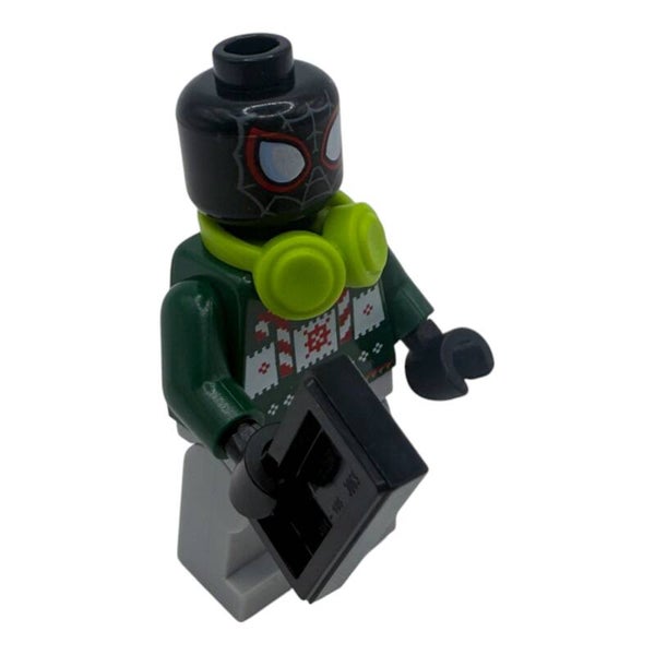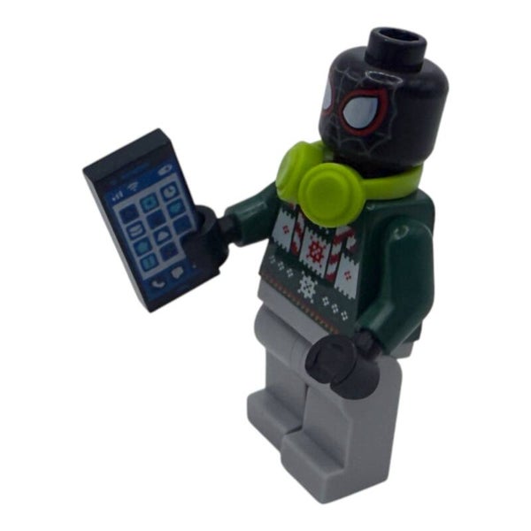 Diese einzigartige LEGO® Marvel™ Spider-Man Minifigur zeigt den schwarzen Spider-Man in einer festlichen Variante: mit Weihnachtspullover, Smartphone in der Hand und stylischen grünen Kopfhörern um den Hals. Eine tolle Ergänzung für jede Marvel- oder Weihnachts-Sammlung!
