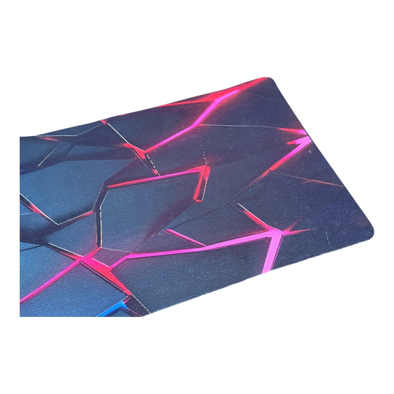 Ein echter Blickfang: Der rot-blaue Farbverlauf kombiniert mit dem leuchtenden Riss-Design hebt sich auffällig vom schwarzen Hintergrund ab. Damit wird dein Schreibtisch zu einer stylischen Gaming-Zone.