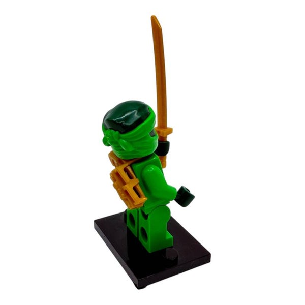 Lloyd trägt seinen typischen grünen Ninjaanzug, der mit zahlreichen goldenen und schwarzen Akzenten aufwendig bedruckt ist. Der Look wirkt kraftvoll und dynamisch – perfekt für spannende Kämpfe gegen die Mächte des Bösen.