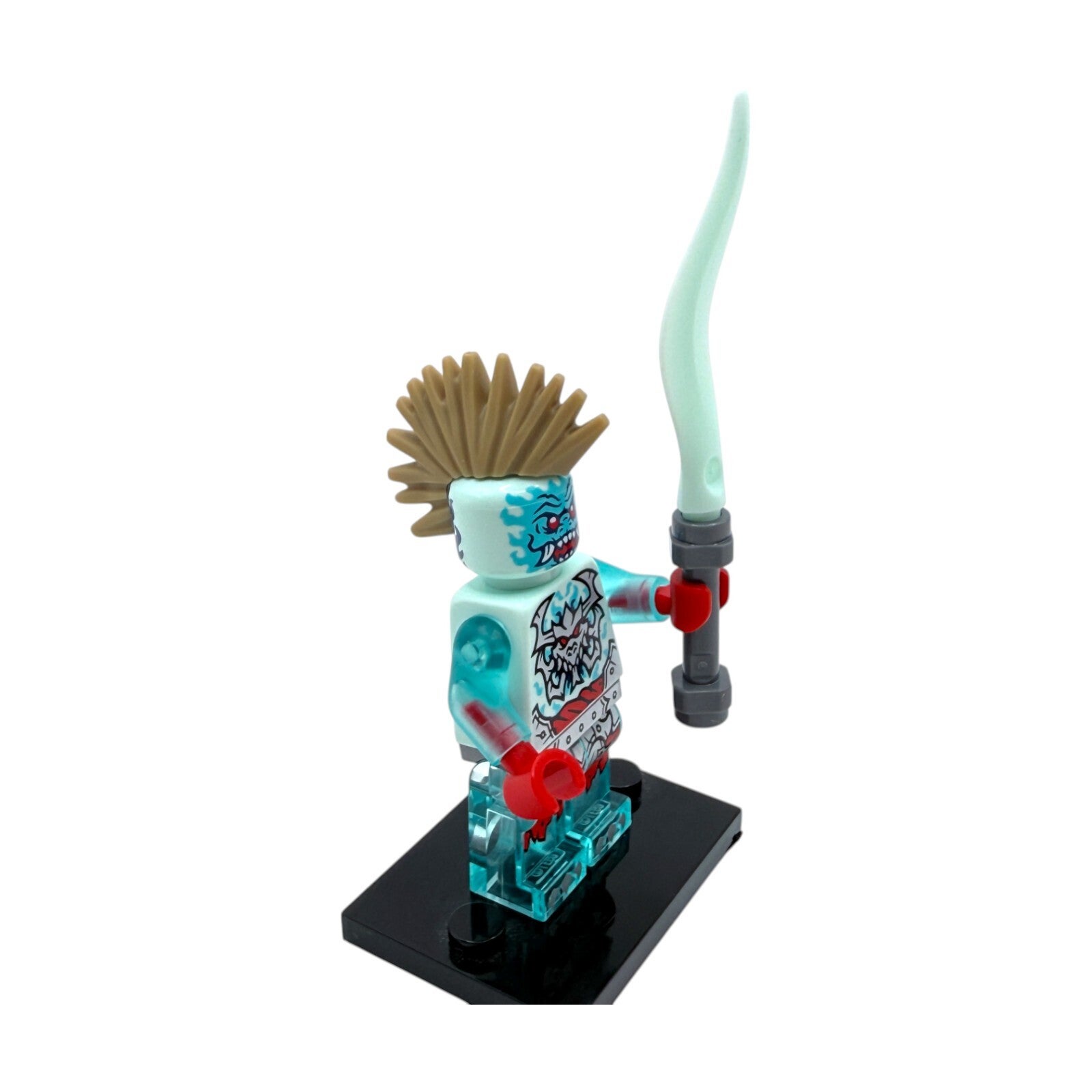 In seiner Hand hält die Figur ein Krumschwert, das perfekt zum Geister-Look passt. Seine Kleidung ist von mystischen Mustern geprägt, die sich bis in die Beine und Arme fortsetzen – natürlich alles in echter LEGO® Qualität.