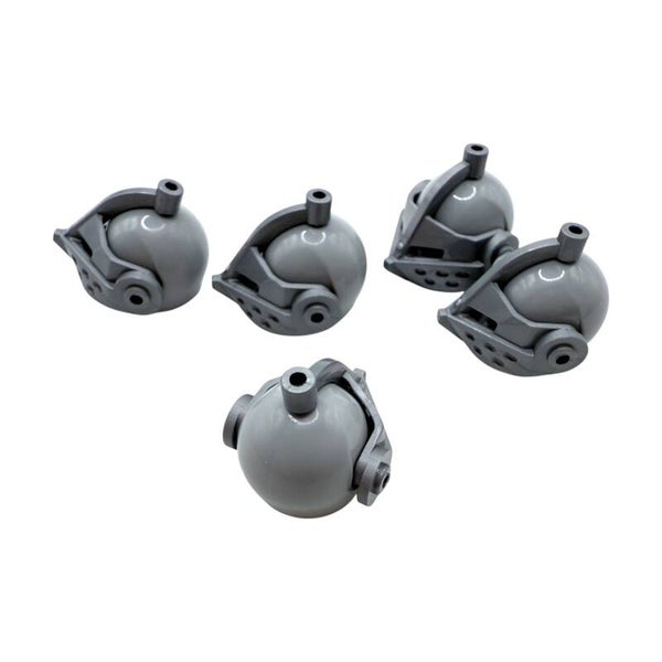 Diese fünf originalen LEGO® Ritterhelme bestehen aus je zwei Teilen: dem klassischen Helm (Elementnummer: 6399633) und dem klappbaren Visier (Designnummer: 2594). In edlem Silber gehalten, bieten sie ein authentisches Erscheinungsbild für mittelalterliche Figuren und sind ideal für Ritter, Wachen oder Soldaten.