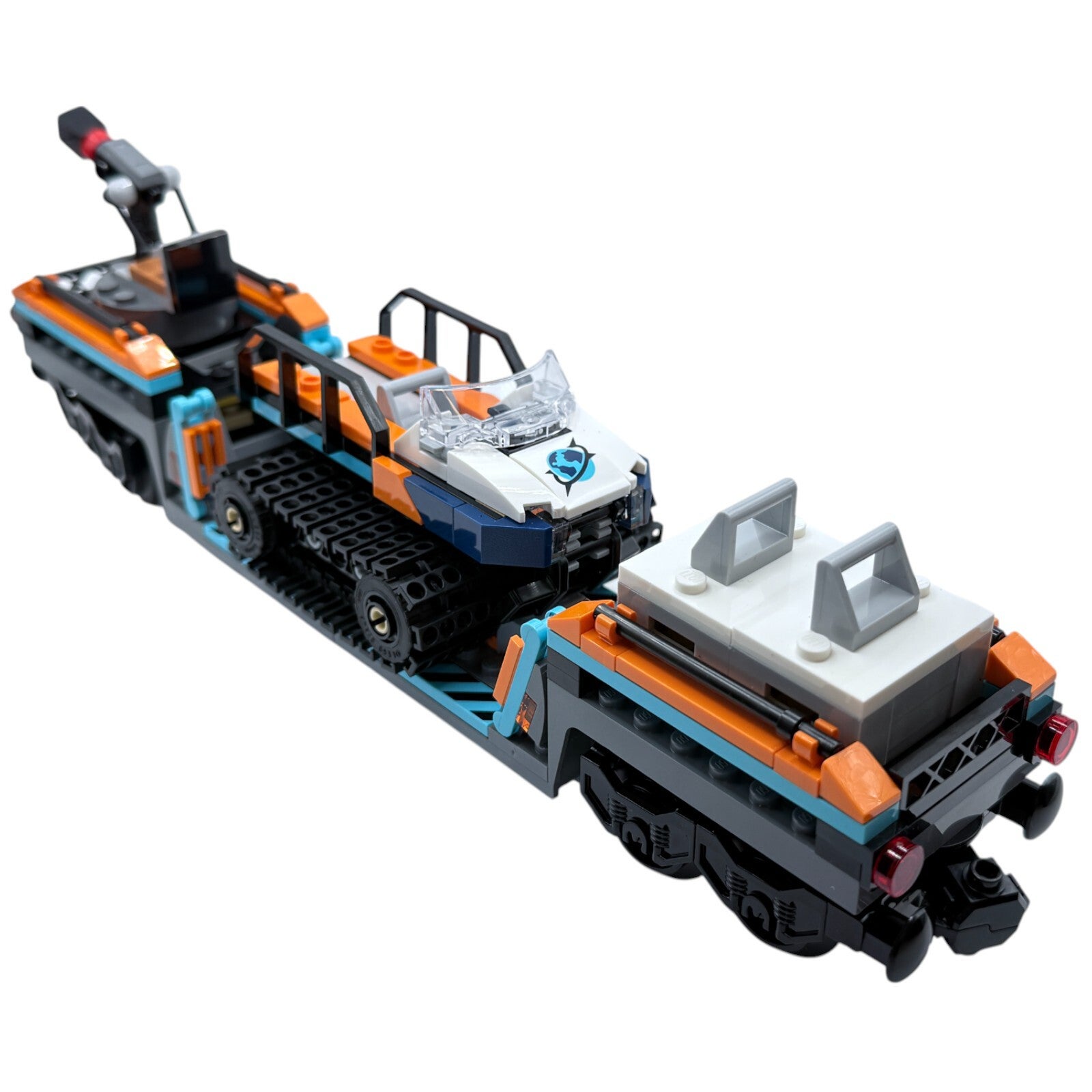 Das Design in kräftigem Orange mit hellblauen Elementen fügt sich ideal in das Arktis-Set ein. Dank der Magnetkupplung lässt sich der Waggon mühelos an andere LEGO Züge oder Wagen anhängen.