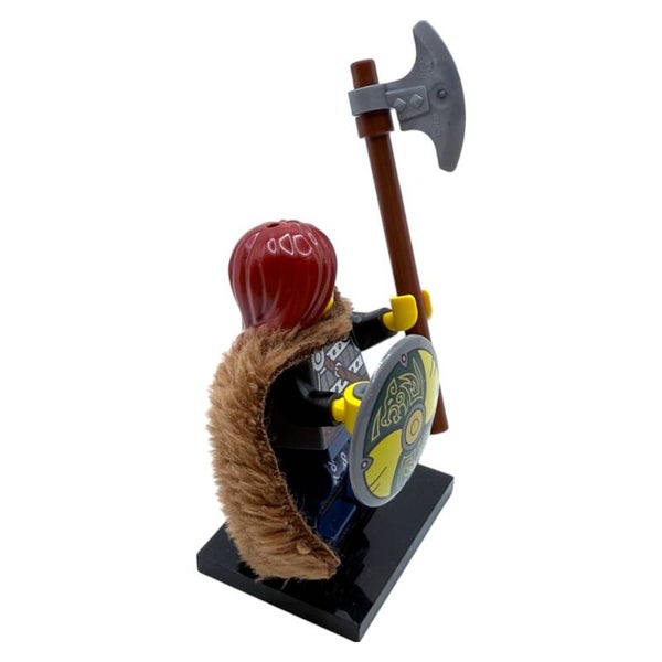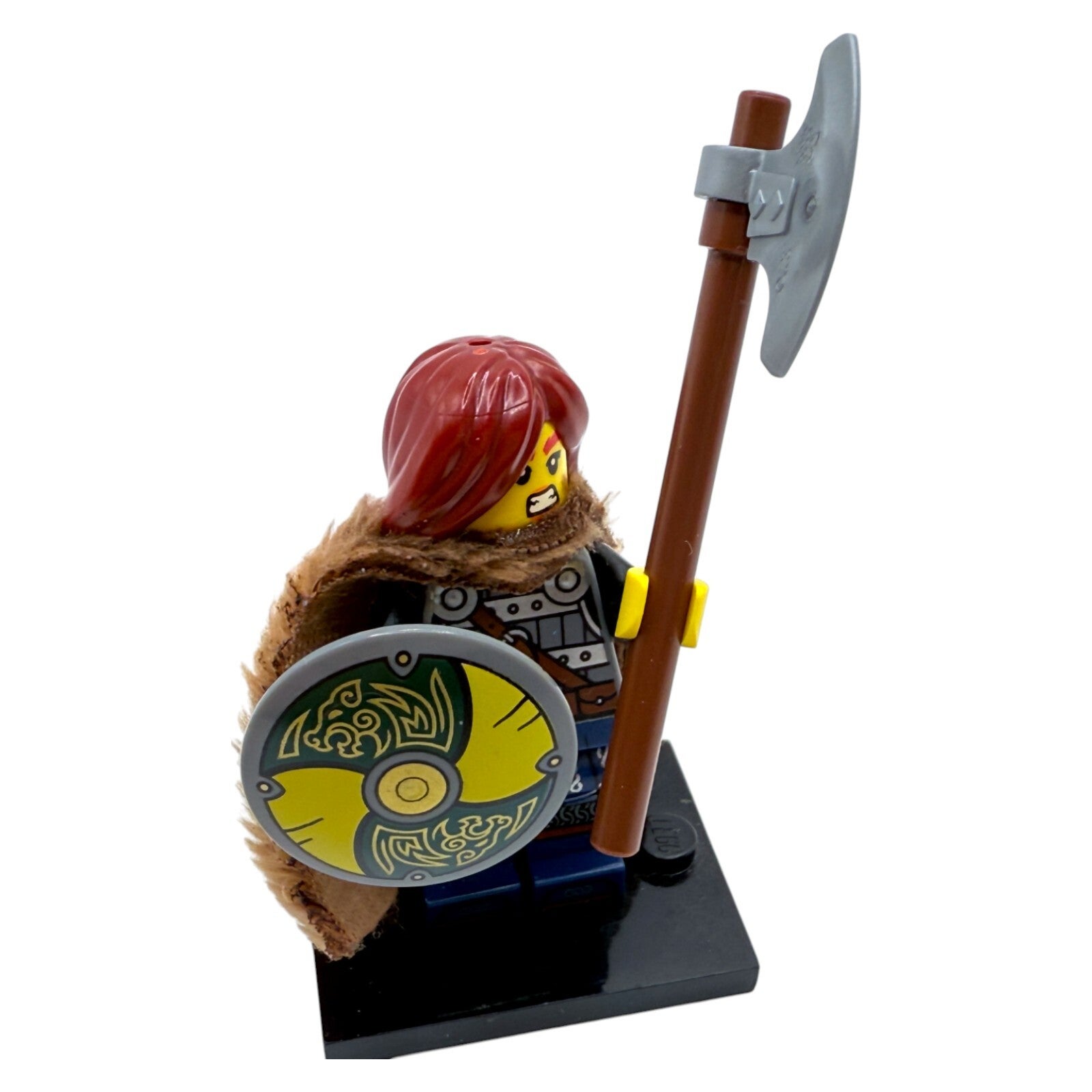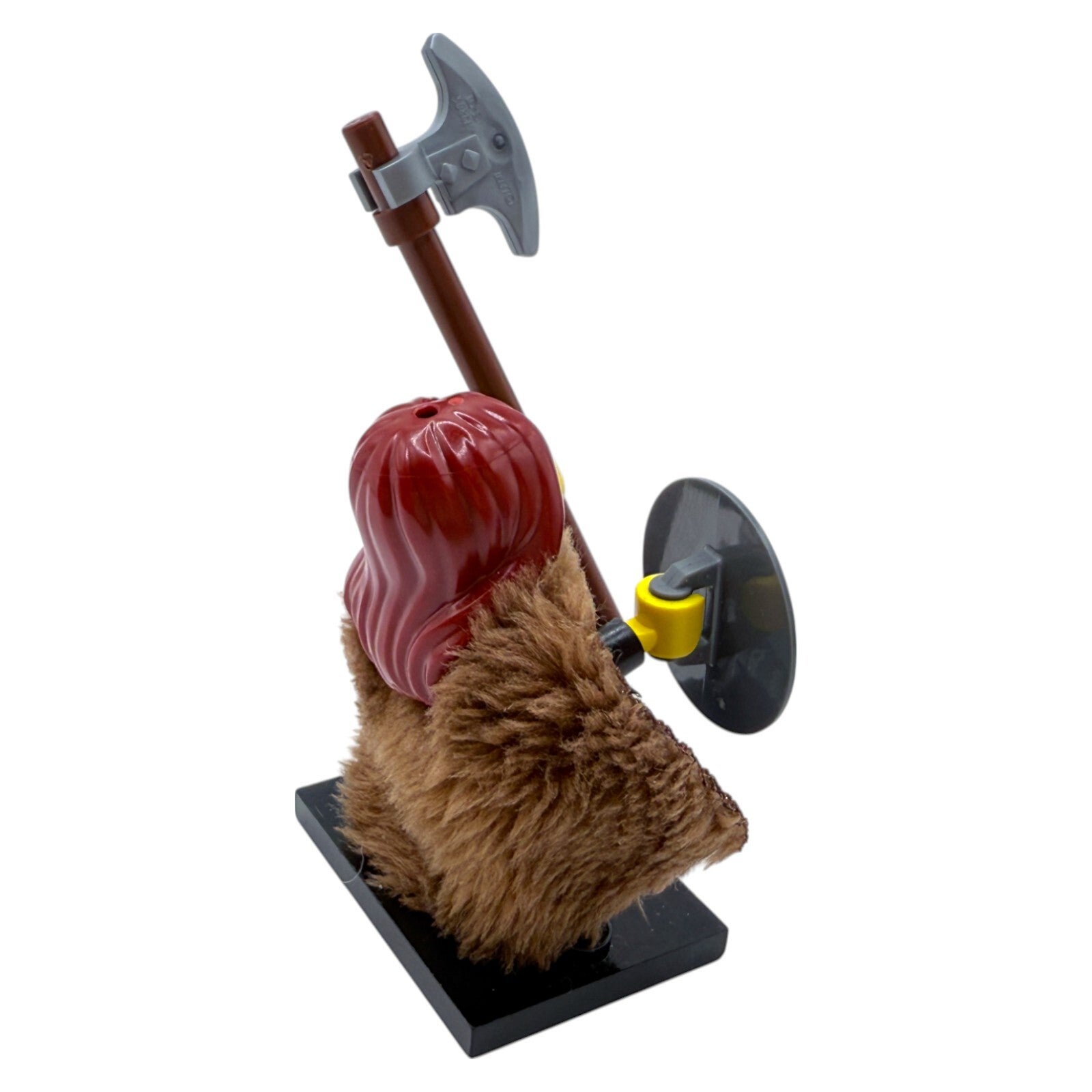 LEGO® MOC Minifigur „Wikingerin mit Axt, Schild & Fellumhang“ detailreich