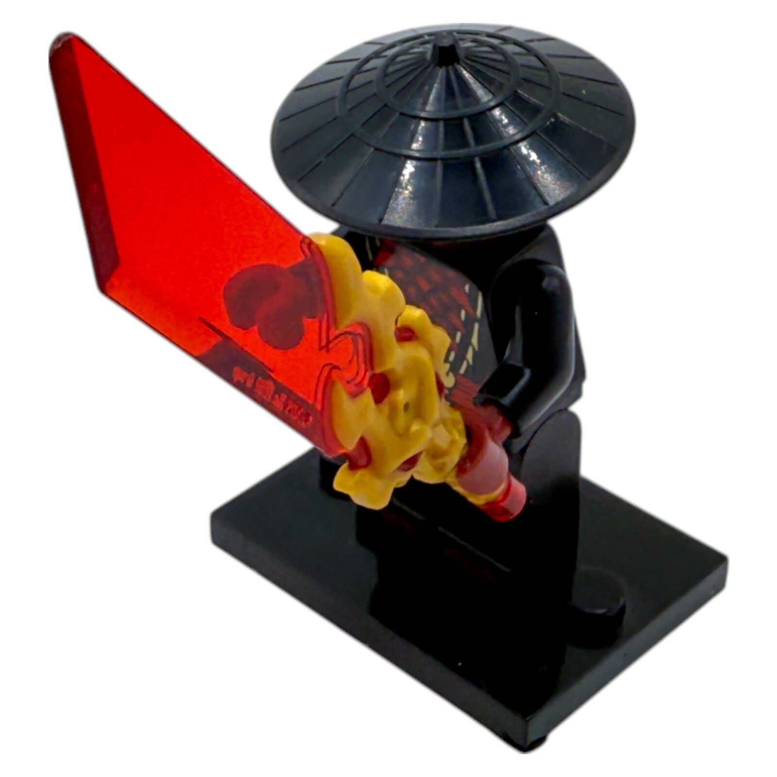 In der Hand hält er eine seltene Enthüllungsklinge, deren Klinge transparent-rot mit goldener Fassung ist – ein echtes Highlight für jede Sammlung!