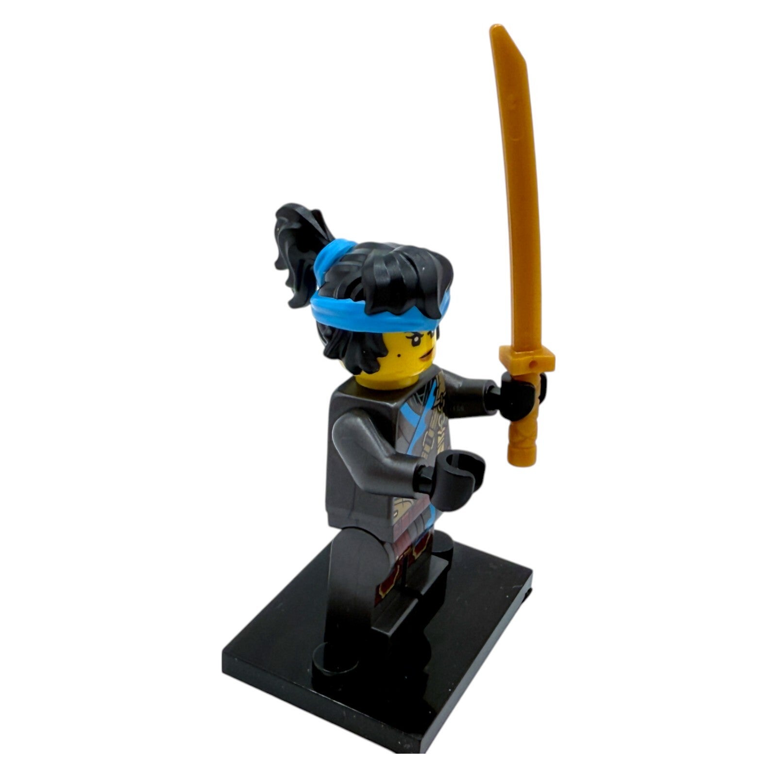 Ihr Outfit besticht durch einen detaillierten schwarzen Kampfanzug, ergänzt durch ein blaues Stirnband, das sich optisch harmonisch mit ihrer schwarzen Haarpracht verbindet. Diese Version von Nya ist speziell und nur in diesem Set enthalten – ein Highlight für Sammler und Fans!
