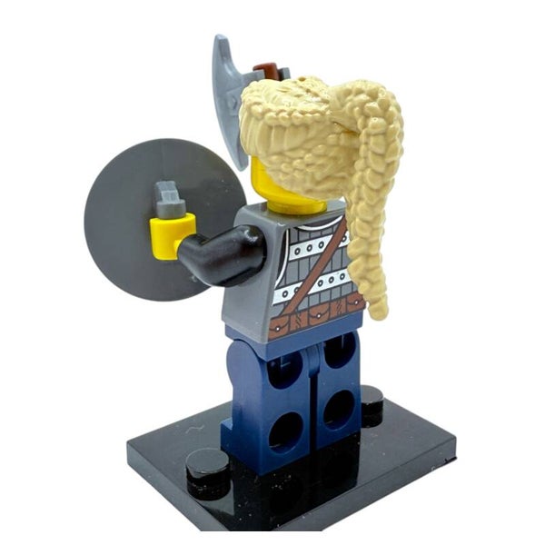 Diese individuell zusammengestellte LEGO® Wikingerin bringt Geschichte und Fantasy in dein LEGO® Universum! Ausgestattet mit Kampfaxt, rundem Schild und gepanzertem Oberteil, ist sie bereit für jedes Abenteuer. Ihre lange blonde Frisur im Pferdeschwanz und die markanten Farben machen sie zu einem echten Blickfang in jedem Diorama. Die perfekte Ergänzung für mittelalterliche Settings oder MOC-Armeen.