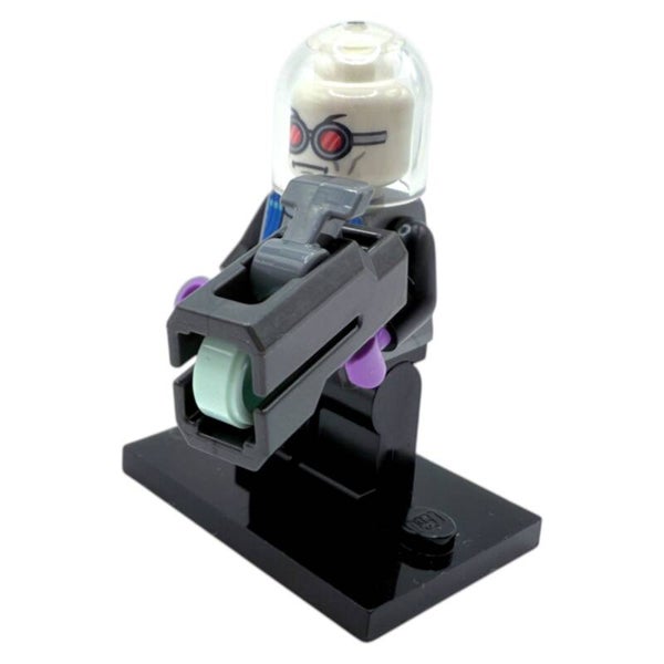 Die LEGO® Minifigur Mr. Freeze™ stammt aus dem Set 76274 – Batman™ im Batmobil™ vs. Harley Quinn™ und Mr. Freeze™ und zeigt den eiskalten Gegenspieler in einem modernisierten, detailreichen Design. Besonders auffällig: der Glaskuppelhelm, das weiße Gesicht mit roter Schutzbrille sowie der Spring-Shooter-Blaster, der als seine ikonische Kältewaffe dient.