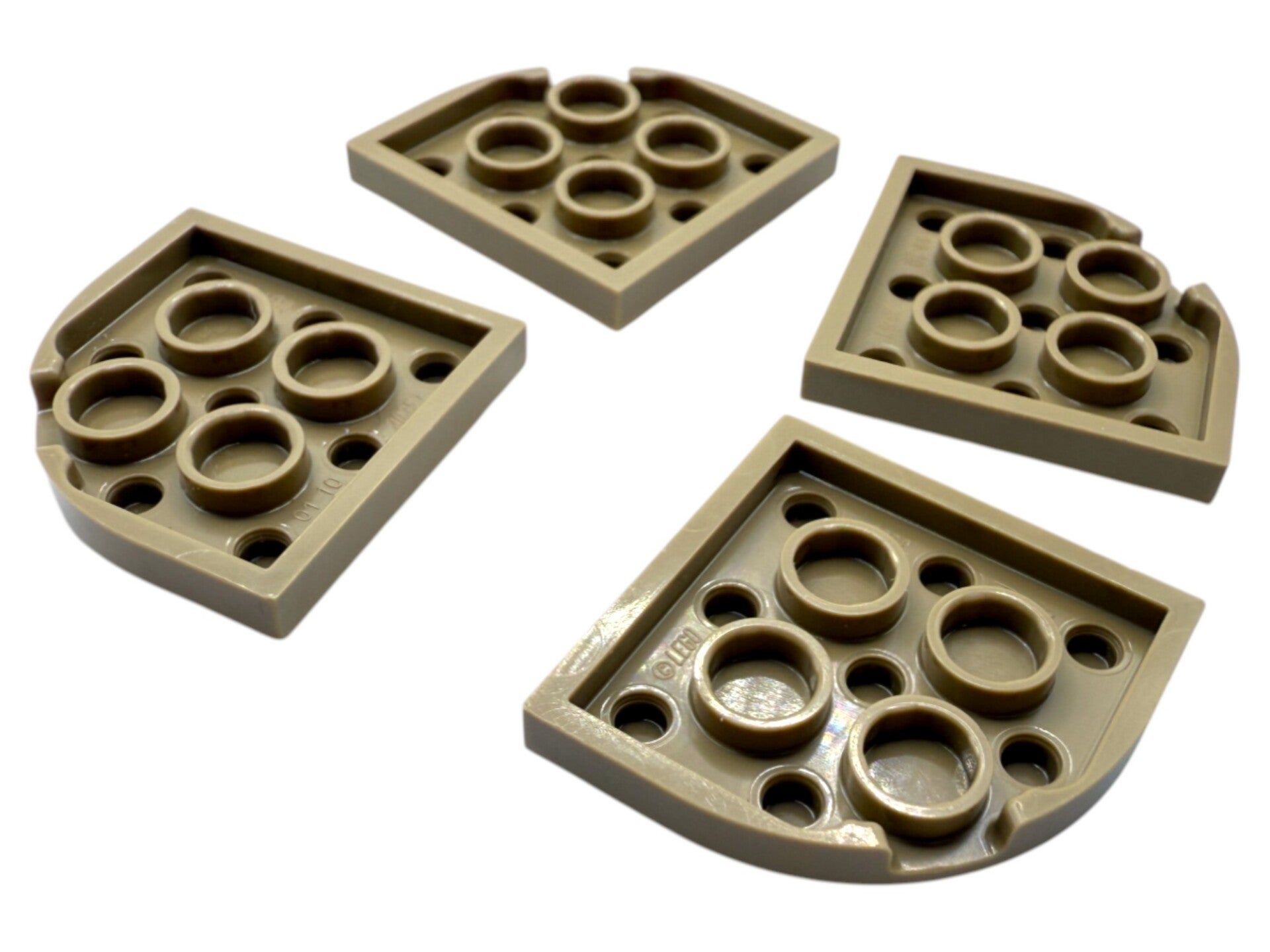 Dieses Set enthält 4x LEGO® Platten Halbrund 3x3 in der Farbe Sandgelb (Sand Yellow) – ein beliebtes Bauteil für realistische Bauwerke, Landschaften und detailreiche MOCs.