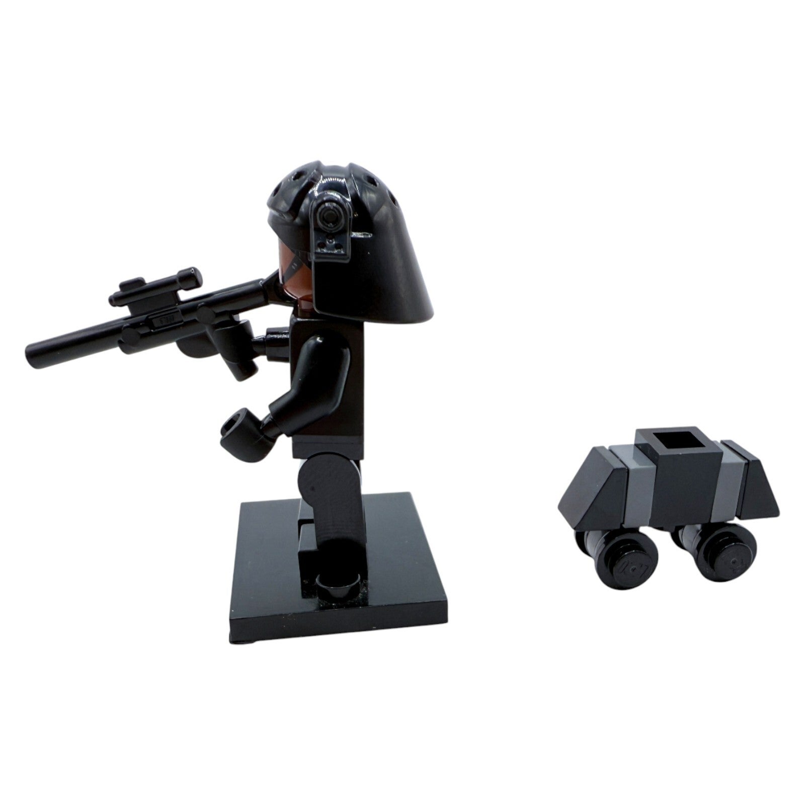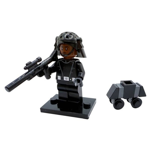 Der Trooper trägt eine schwarze Uniform mit aufwendig bedrucktem Torso, Gürtel und Knöpfen. Sein typischer schwarzer Helm und der lange Blaster runden das klassische Design ab. Die Gesichtsvariante mit braunem Hautton bringt Abwechslung und Realismus in jede Star Wars™ Sammlung.