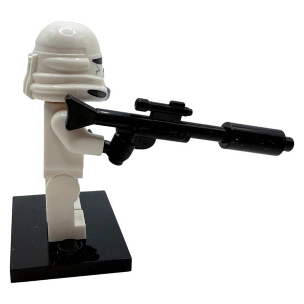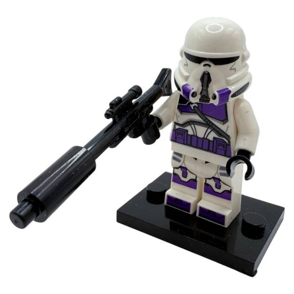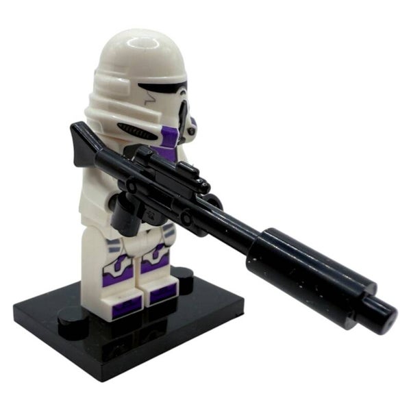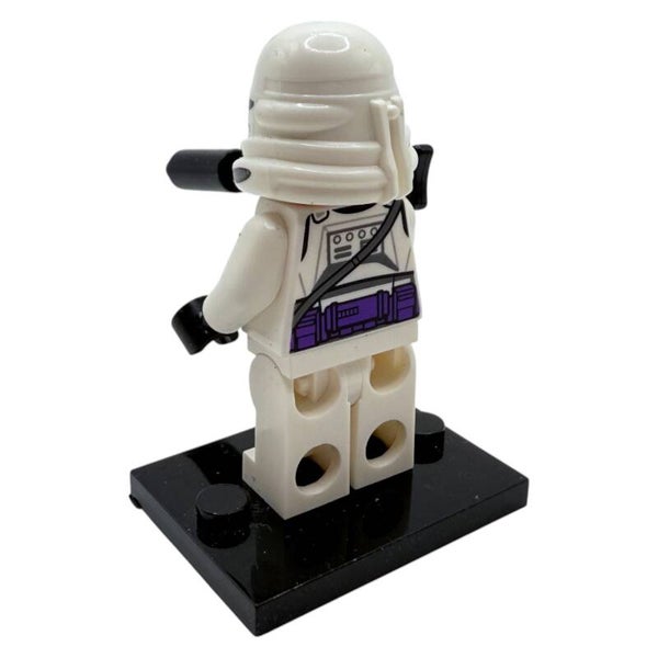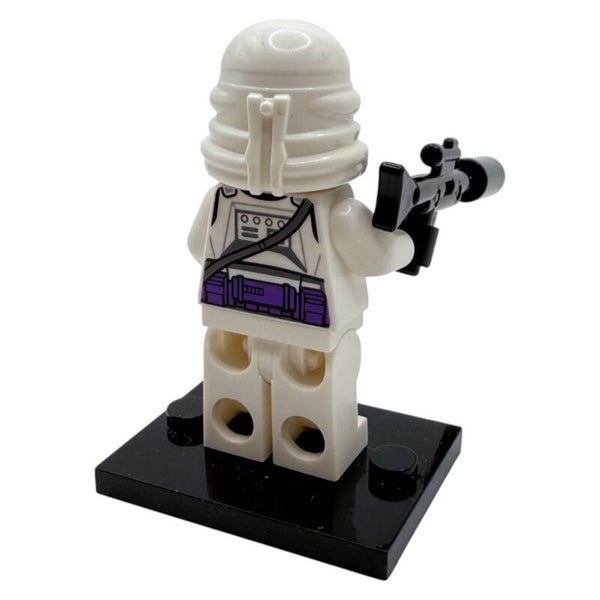 Die Figur trägt eine weiße Klonrüstung mit violettem Helm- und Torso-Druck, wie sie in den Klonkriegen zu sehen ist. Der lange Blaster verleiht der Figur ein einsatzbereites, dynamisches Erscheinungsbild. Mit beidseitigem Druck und klassischem Clone-Design ist diese Minifigur ein echtes Sammlerstück für alle LEGO® Star Wars™ Fans.