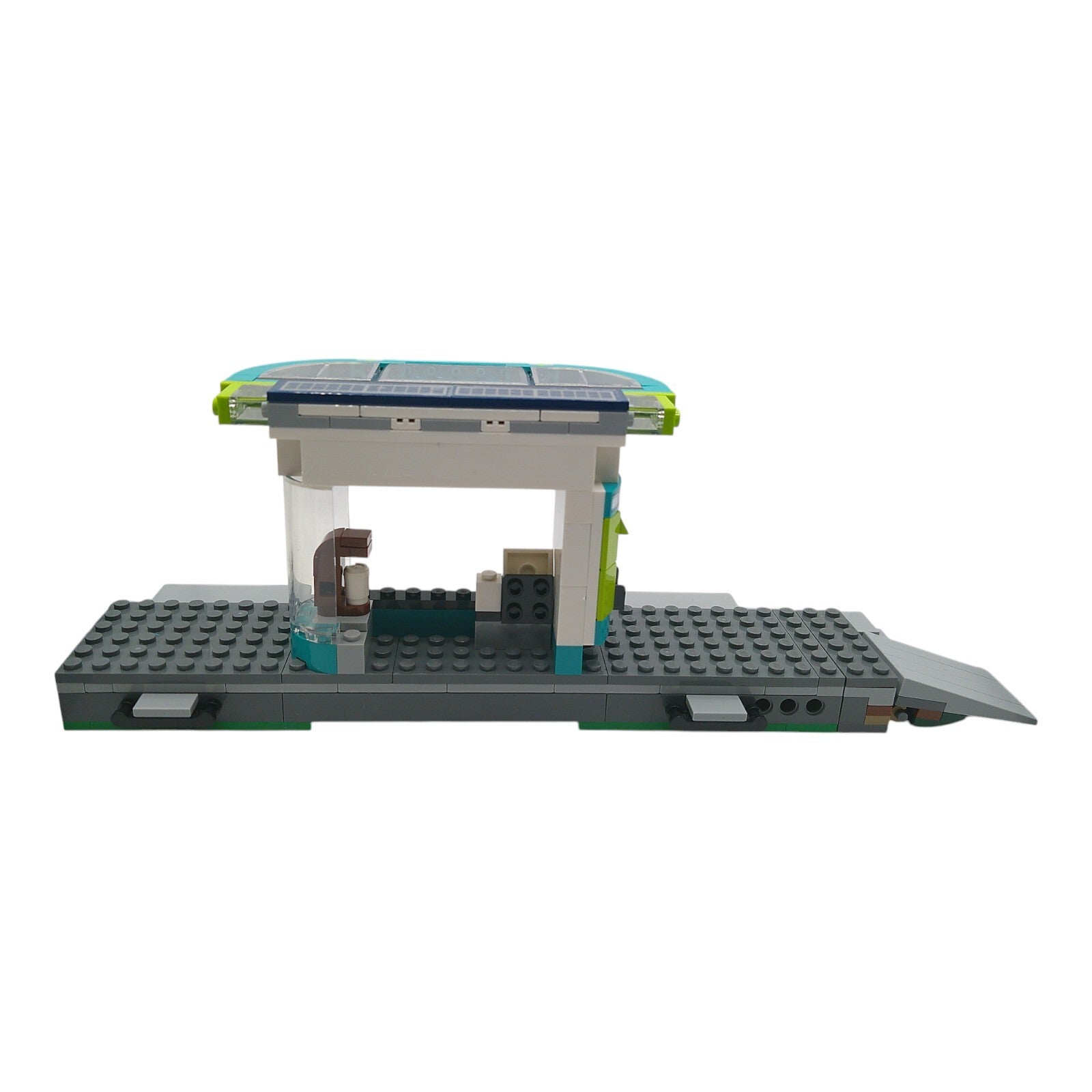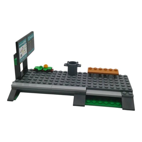 Das Set enthält einen großen Bahnsteig mit Coffee-Shop und Ticketautomat sowie einen kleineren Bahnsteig mit Bank und Anzeigetafel – perfekt für realistische Spielszenen oder zum Ausbau deiner LEGO® City.