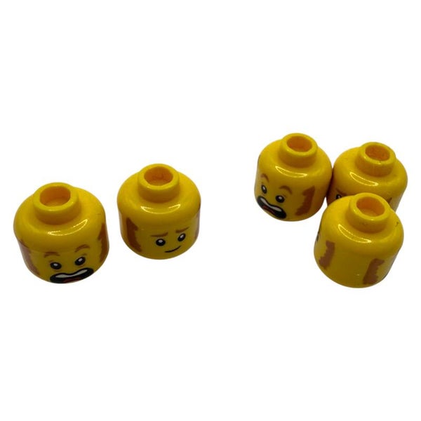 LEGO® 5x Kopf gelb beidseitig erschrocken schmunzelnd 6351352 79216 Head 3540