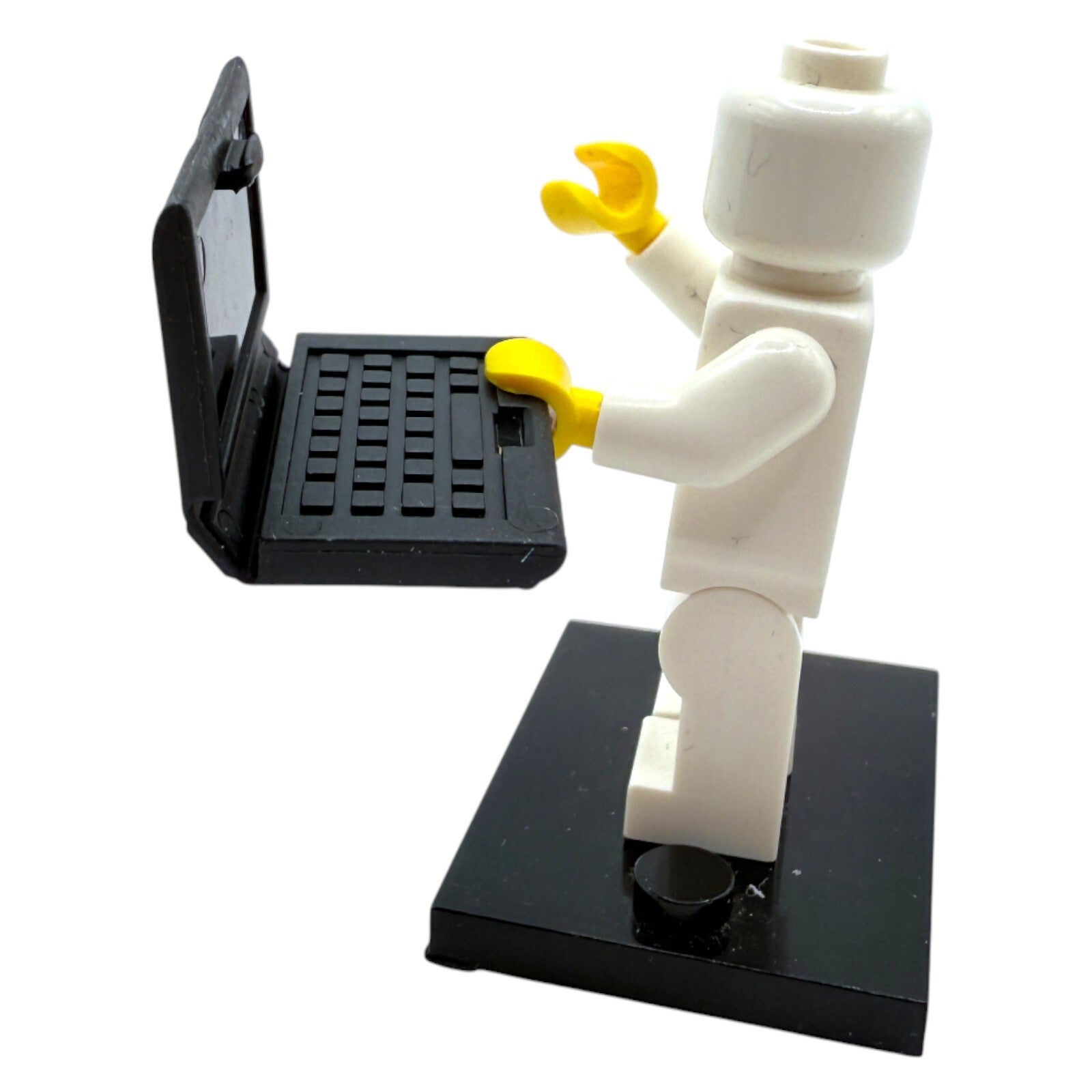 Der Laptop lässt sich aufklappen, sodass Tastatur und Bildschirm sichtbar werden – ein realistisches Detail, das jede Minifigurenausstattung aufwertet.
