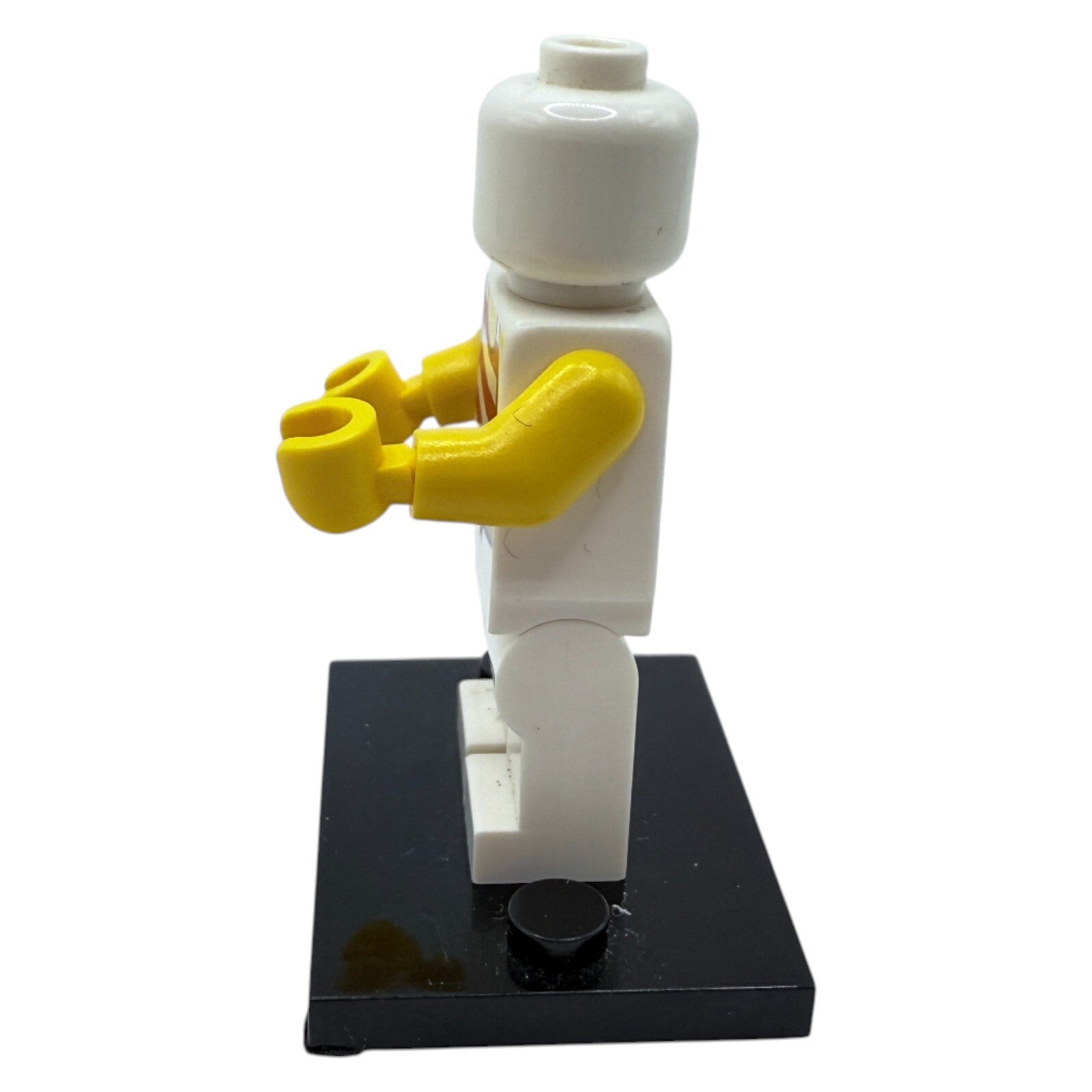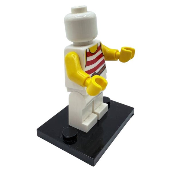 Der Druck zeigt rote horizontale Streifen, einen dunkelorangenen Gürtel und gelbe Schultern für den typischen LEGO® Look.