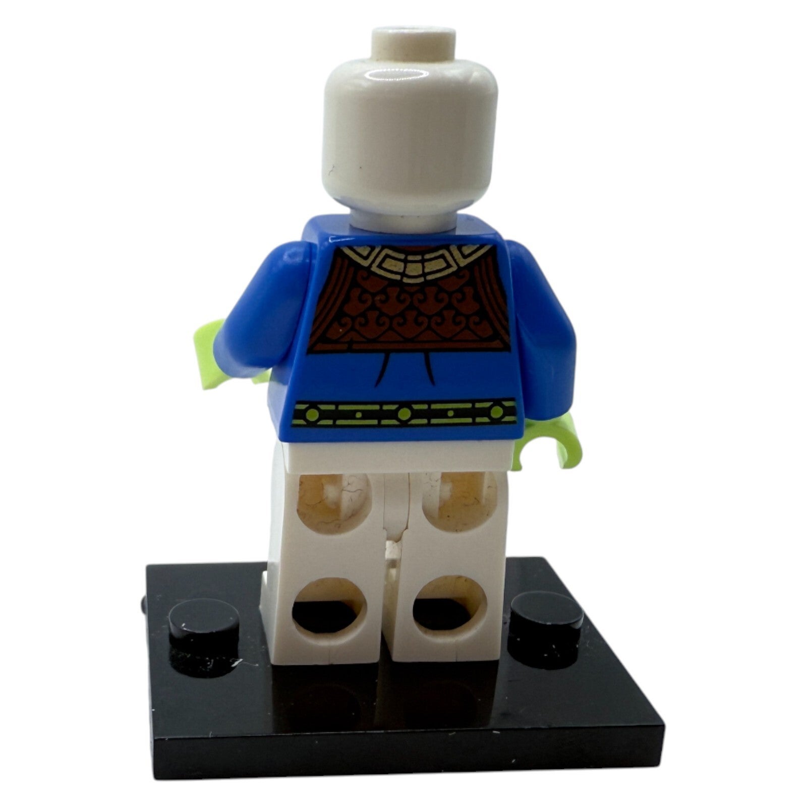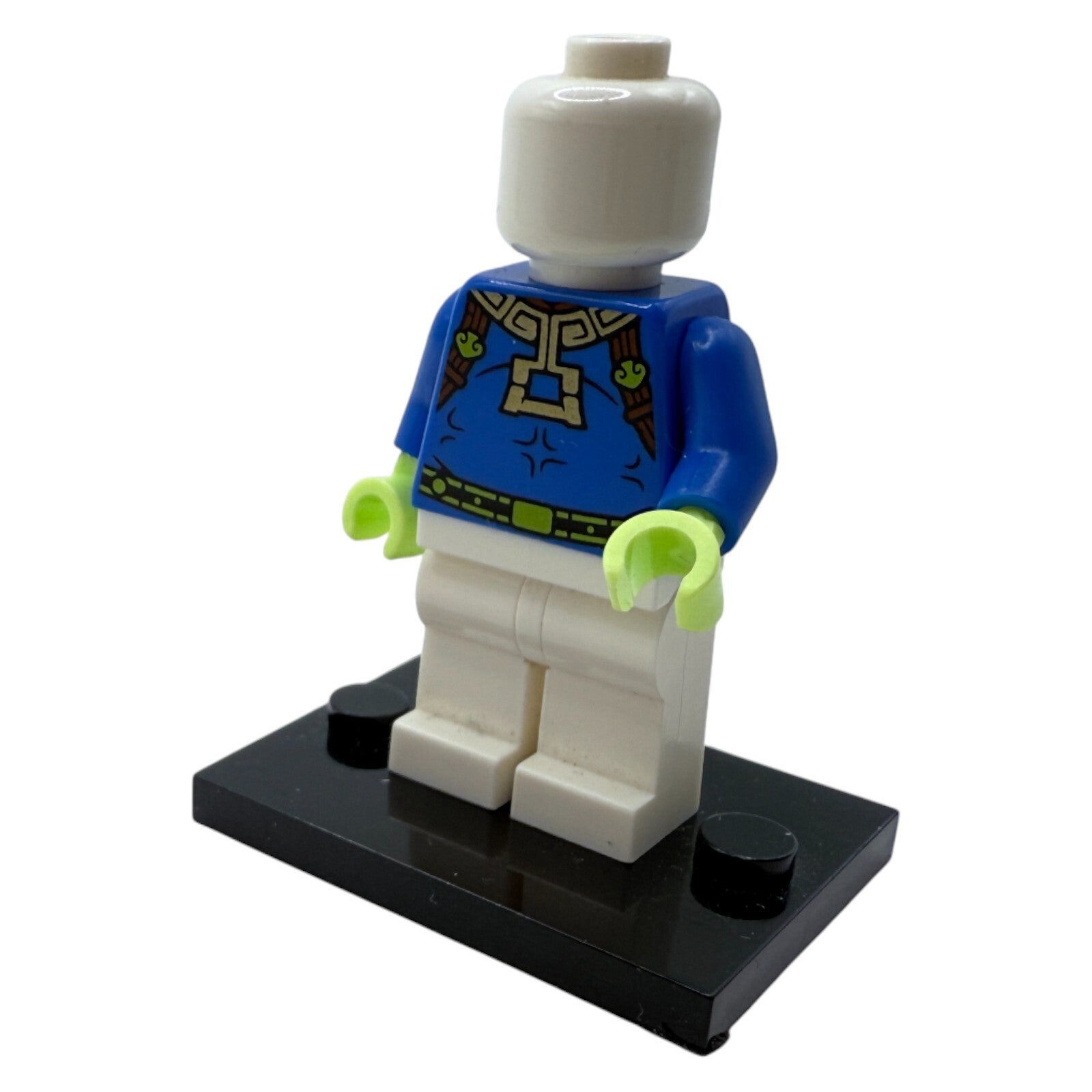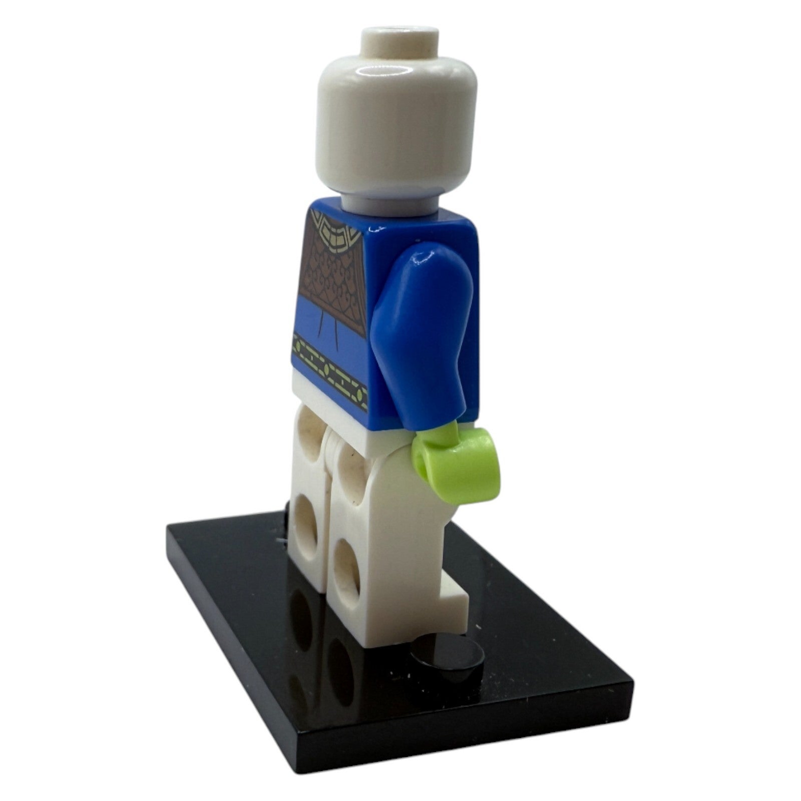 Die Arme sind blau, die Hände gelbgrün – ein auffälliger Farbkontrast, der besonders in Fantasy- oder Mittelalter-MOCs hervorragend wirkt.