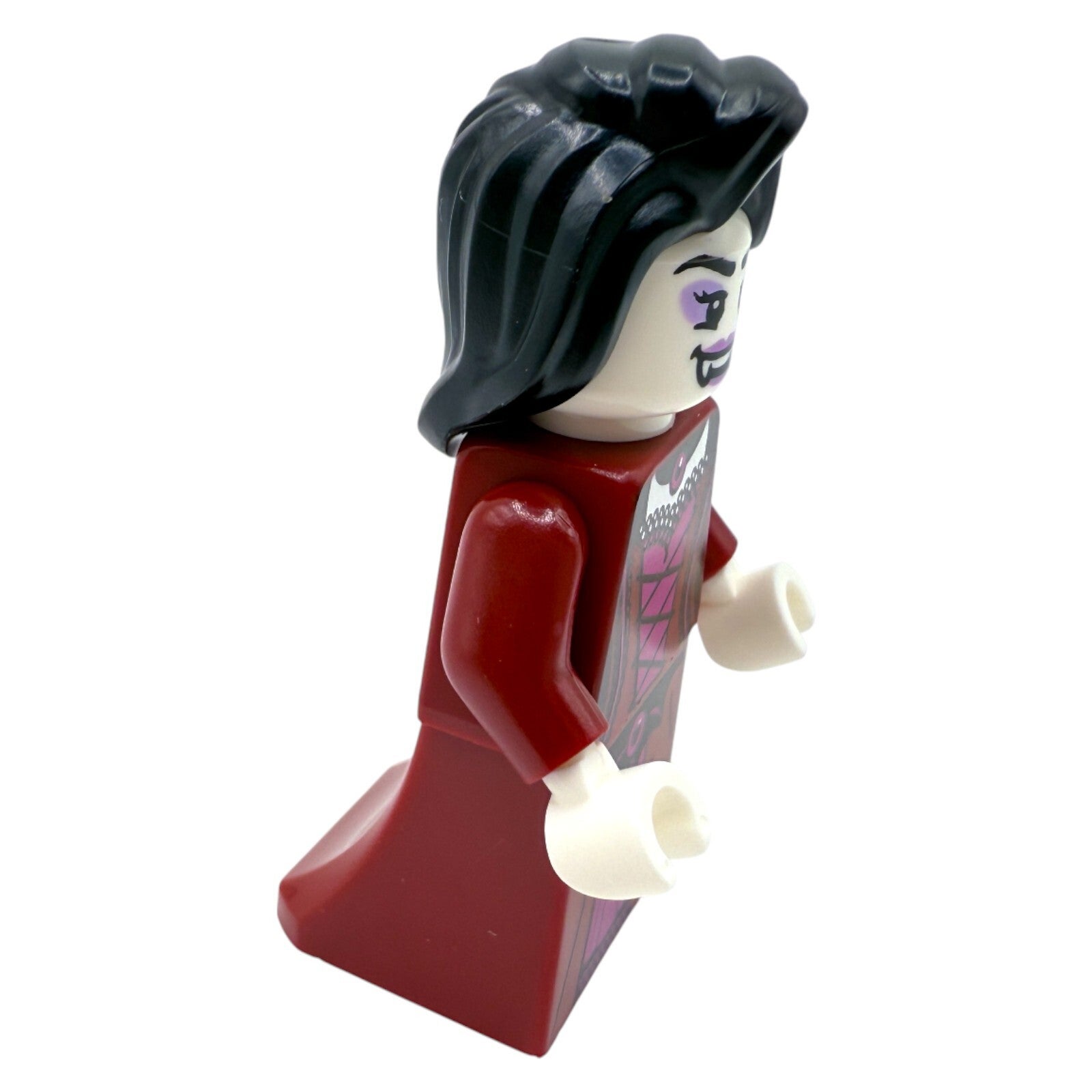 Diese detailverliebte LEGO® Minifigur zeigt die geheimnisvolle "Fürstin der Nacht", eine stilvolle Vampirin aus dem beliebten Set 31167 Geisterhaus (Creator 3-in-1). Mit ihrem bedruckten Gewand in dunklem Rot und Violett, den spitzen Vampirzähnen und dem eleganten schwarzen Haarteil ist sie ein echter Hingucker – sei es als Sammlerstück oder als Highlight in deinen Halloween- oder Fantasy-Szenen.