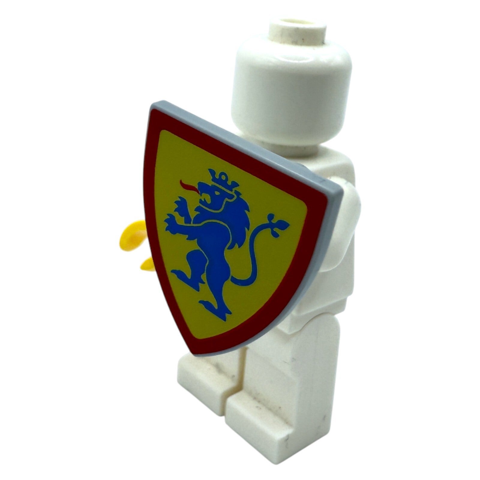 Diese originalen LEGO® Schilde im klassischen Ritterdesign sind perfekt für Fans mittelalterlicher Abenteuer. Das königliche Löwenwappen ist detailreich in Blau auf gelbem Grund mit rotem Rahmen gestaltet – ein zeitloses Symbol der Tapferkeit.