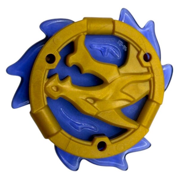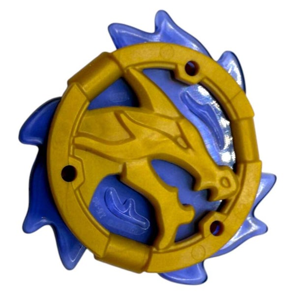 Das Sturmamulett zeigt einen markanten Drachenkopf, umgeben von geformten, transparent-lila Flammenmustern. Die Farbkombination aus Gold, Blau und transparenten Elementen verleiht dem Teil eine besonders edle und mystische Optik. Die plastische Gestaltung hebt sich deutlich von einfachen Schildelementen ab und macht das Amulett zu einem echten Blickfang.