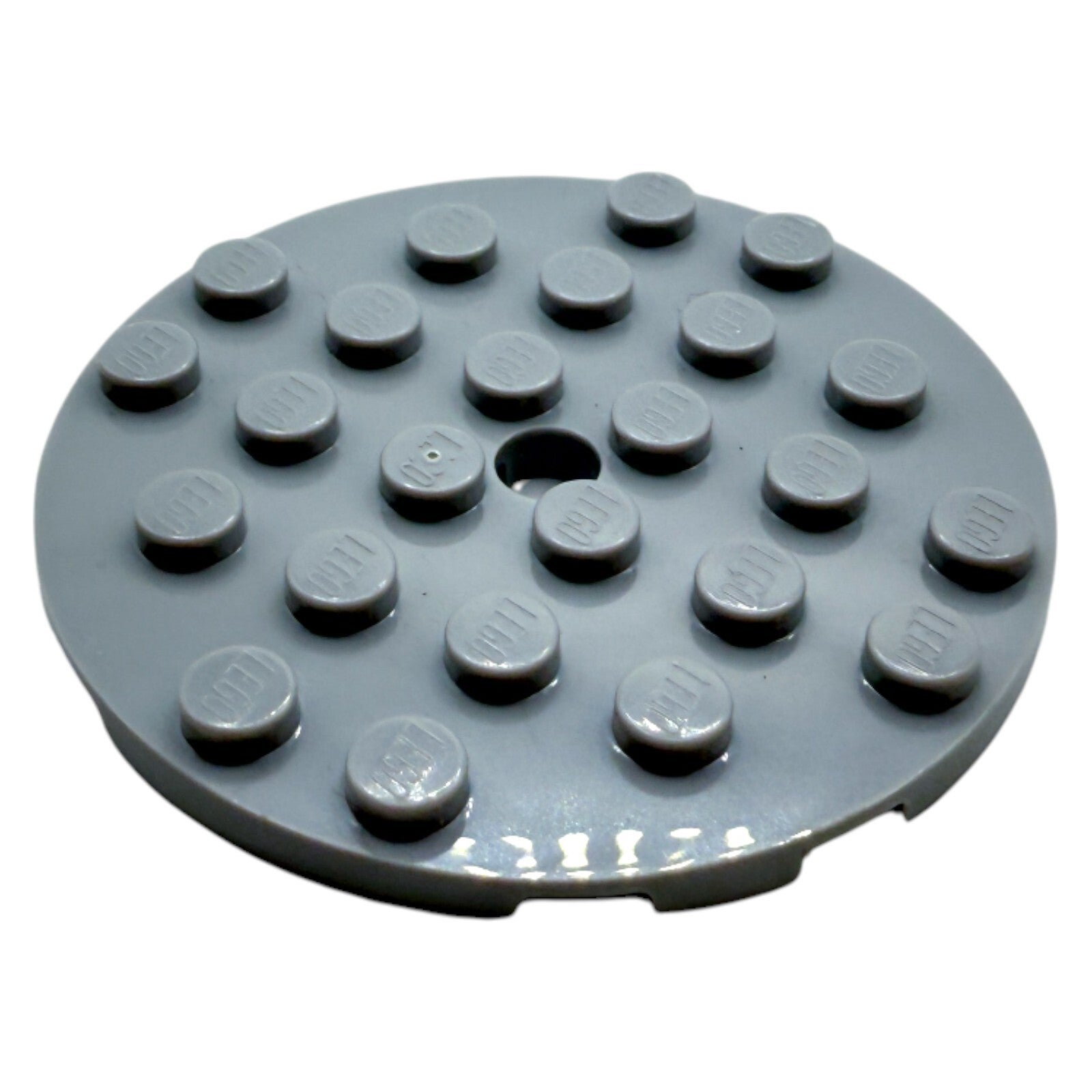 Diese originale LEGO® Rundplatte 6x6 in Hellgrau (Medium Stone Grey) ist ein vielseitig einsetzbares Bauelement für zahlreiche LEGO®-Projekte.