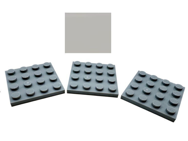 Zum Verkauf stehen 3 originale LEGO® Platten in der Größe 4x4 in Medium Stone Grey (Hellgrau).
