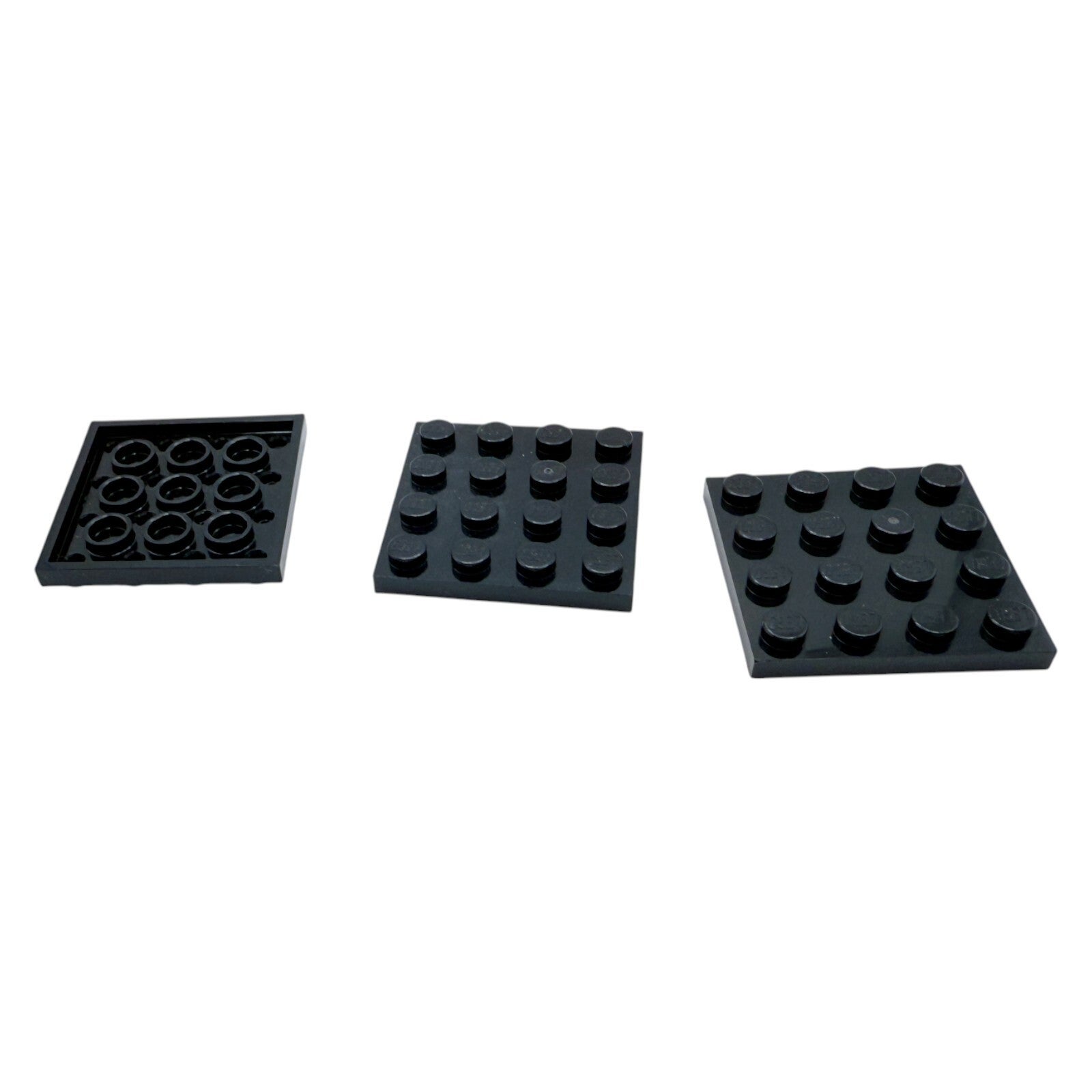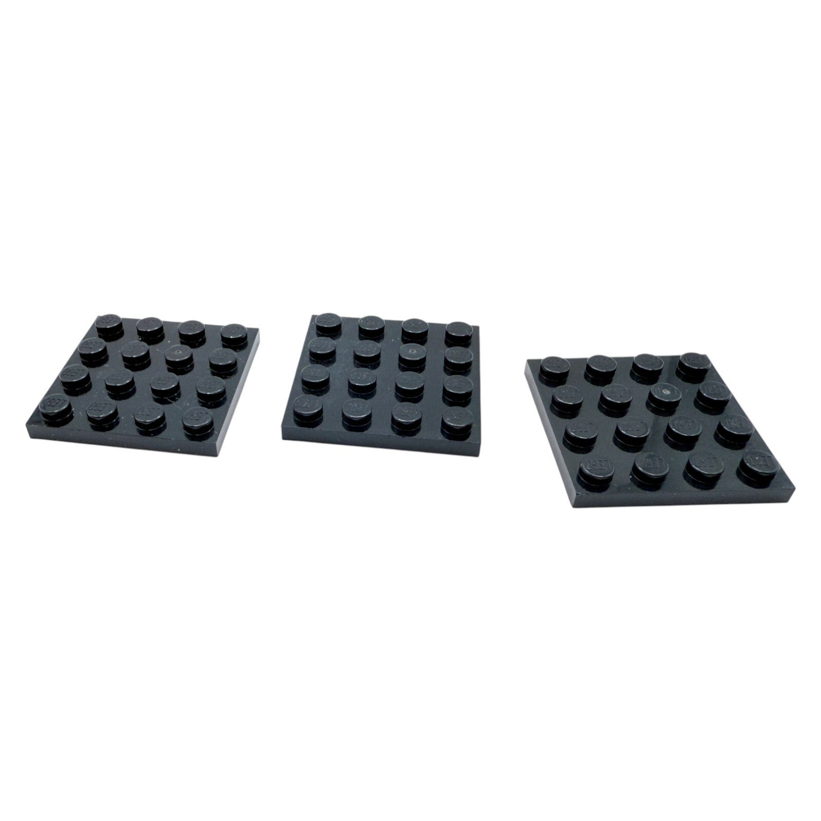 Angeboten werden 3 originale LEGO® Platten in der Größe 4x4 in Schwarz.