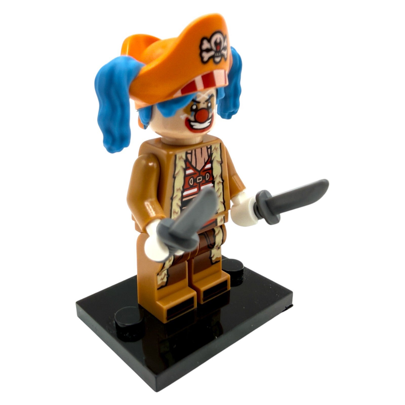 Zum Verkauf steht die originale LEGO® One Piece™ Minifigur Buggy der Clown, der exzentrische Piratenkapitän aus dem Set 75637 – Zirkuszelt von Buggy dem Clown. Die Figur besticht durch ihre detailreiche Bedruckung, das markante Piraten-Outfit sowie den ikonischen Hut mit Haarteil.