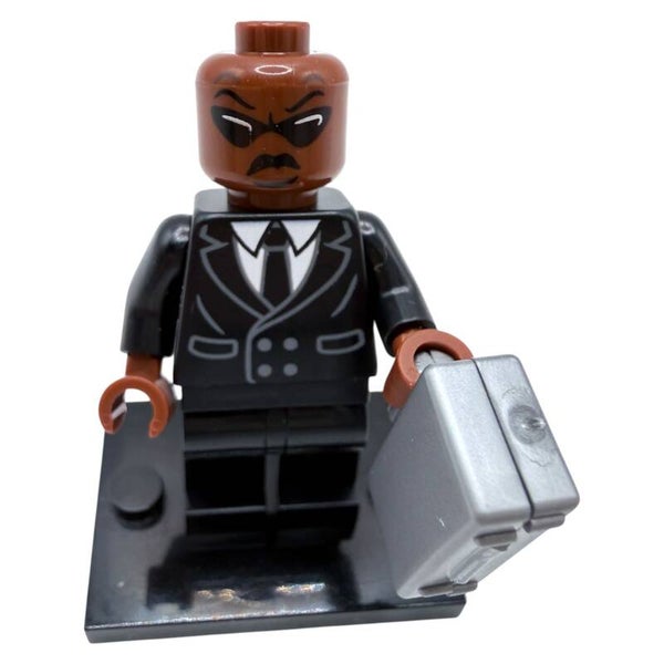 Diese detailreiche LEGO® Disney™ Minifigur stellt Mr. Bubbles, den geheimnisvollen Sozialarbeiter und Undercover-Agenten aus dem beliebten Disney-Film „Lilo & Stitch“, dar. Mit seinem ernsten Blick, schwarzem Anzug und dem ikonischen silbernen Koffer ist er ein echtes Highlight für jede Disney- und LEGO-Sammlung.