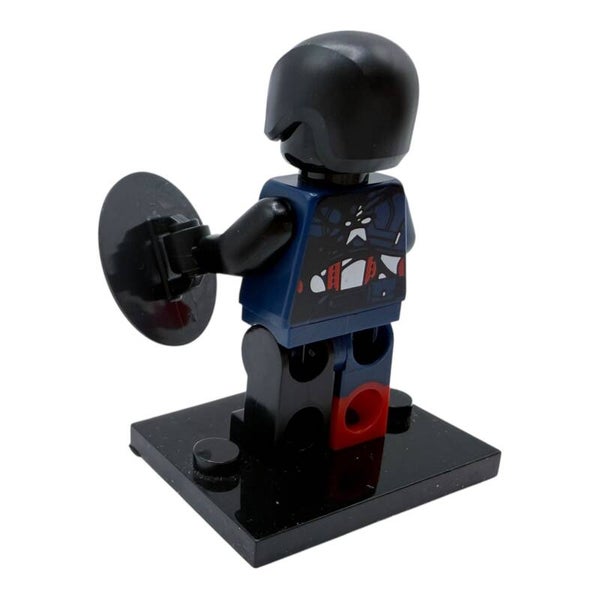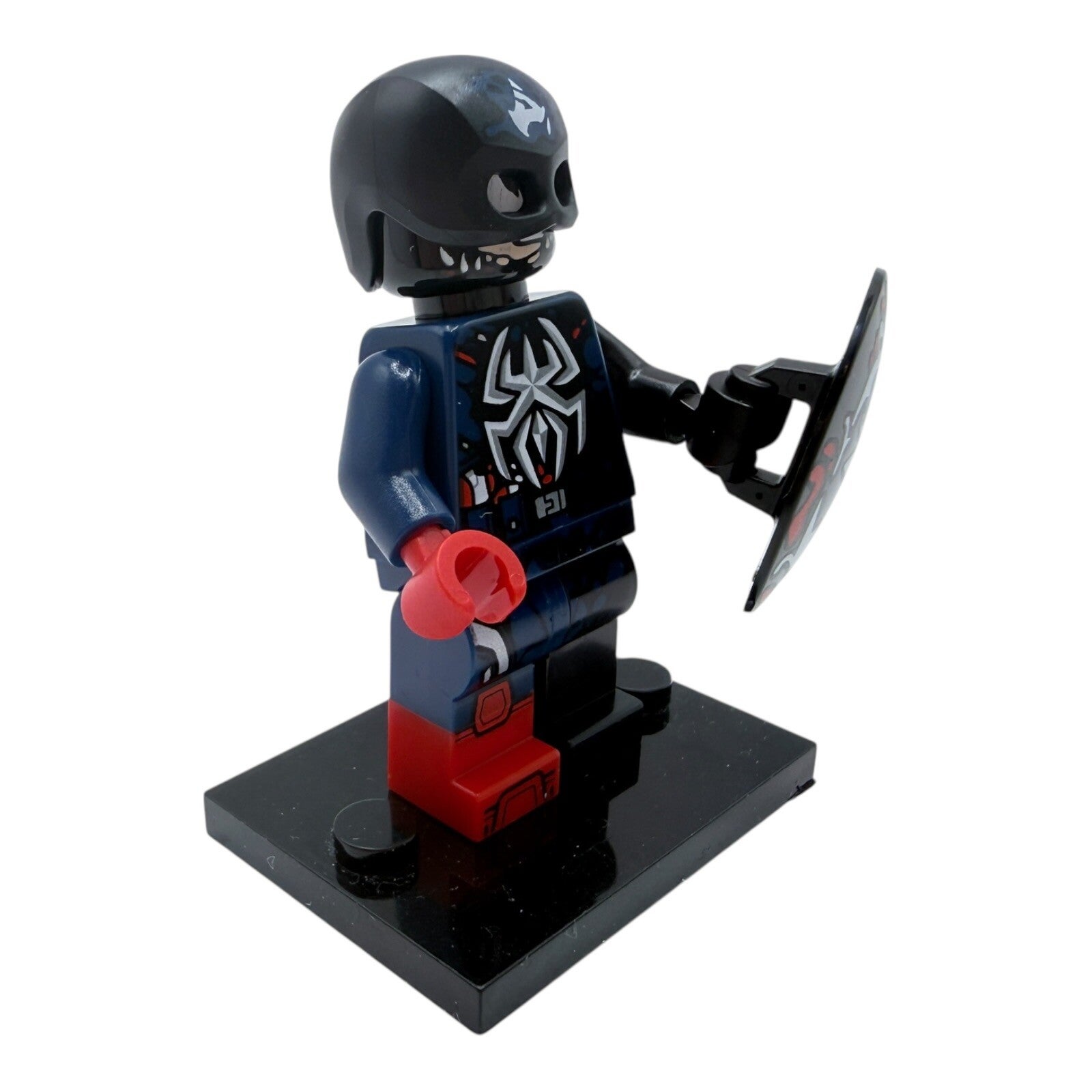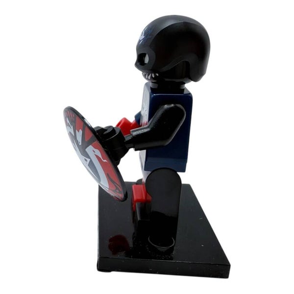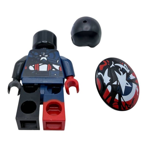 Die Minifigur kombiniert klassische Captain-America-Elemente mit der düsteren Venom-Optik: