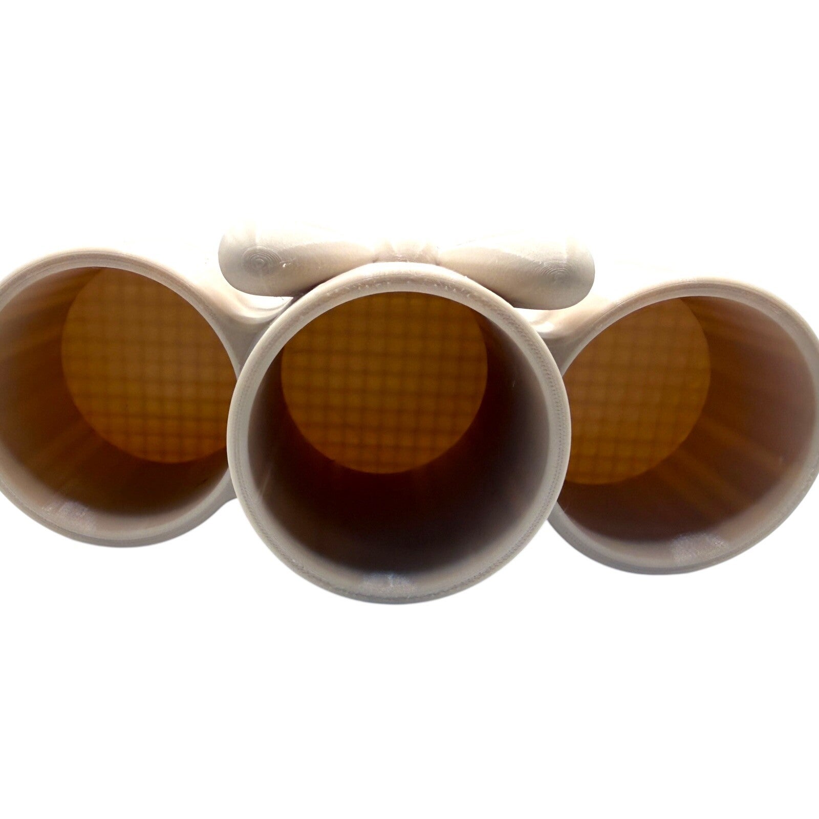 Dieser dekorative Makeup Pinselhalter mit drei Fächern sorgt für Ordnung auf deinem Schminktisch und setzt gleichzeitig einen stilvollen Akzent. Die elegante Schleife auf der Vorderseite macht den Organizer zu einem echten Hingucker im Badezimmer oder am Schminkplatz.