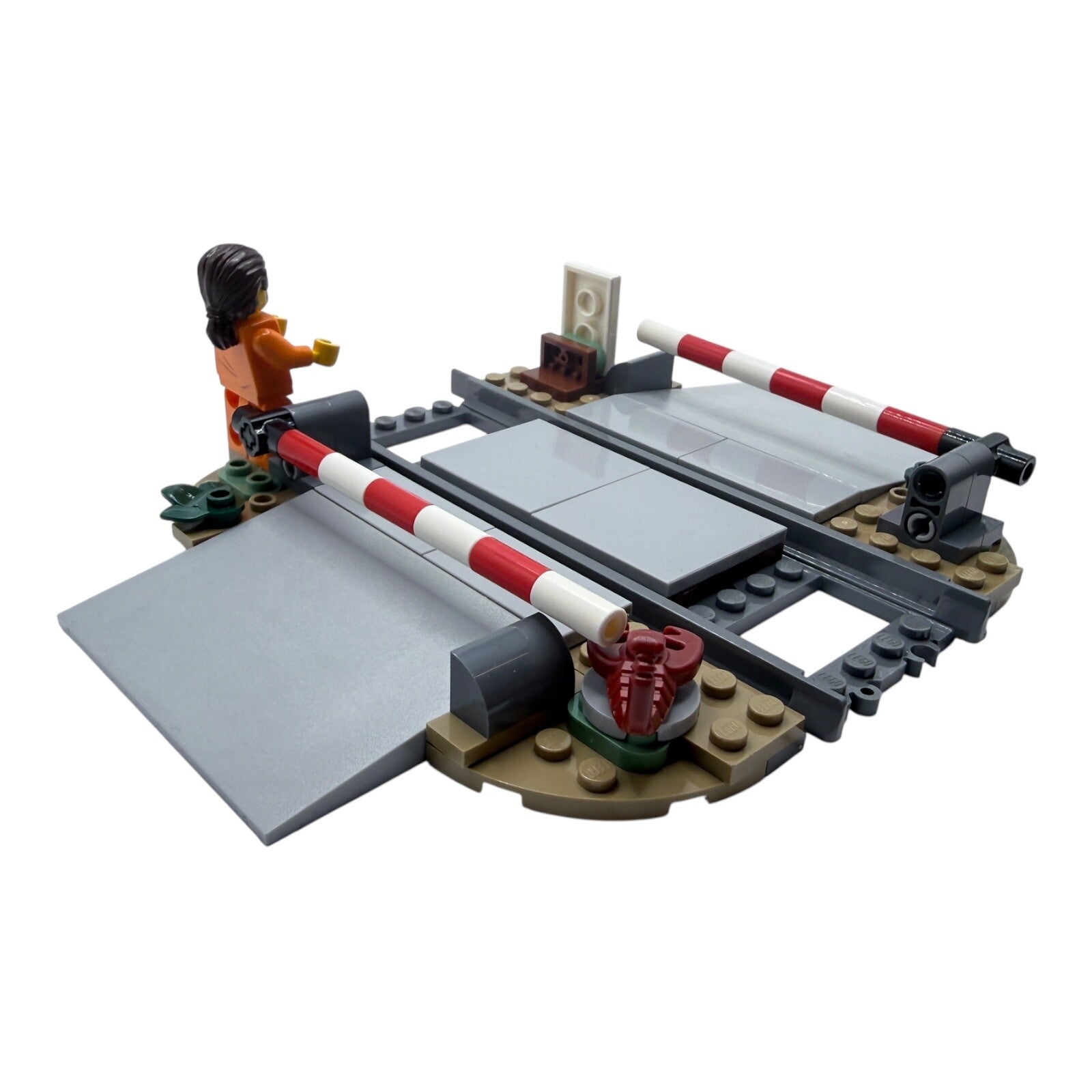 Zum Verkauf steht der LEGO® City Bahnübergang mit Schranken und Minifigur aus dem Set 60508 „Überfall auf den Polizeizug“.