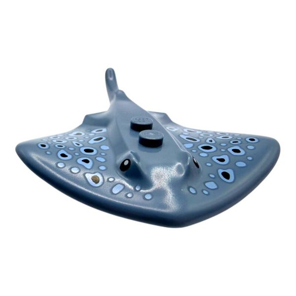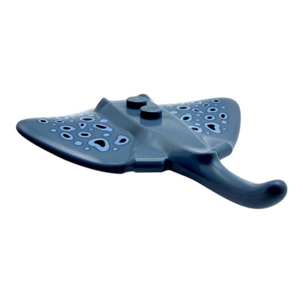 Der LEGO® Rochen in Blau mit Flecken ist eine detailreiche Tierfigur für maritime Bauwelten. Mit seiner flachen Körperform und dem langen Schwanz eignet sich das Element hervorragend für realistische Unterwasser-Szenen.