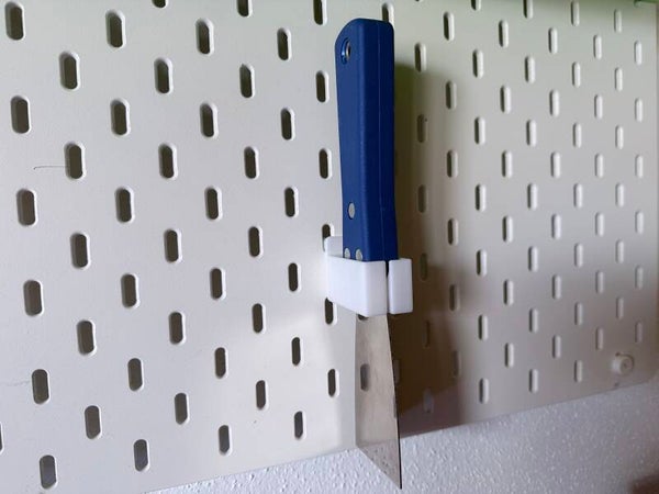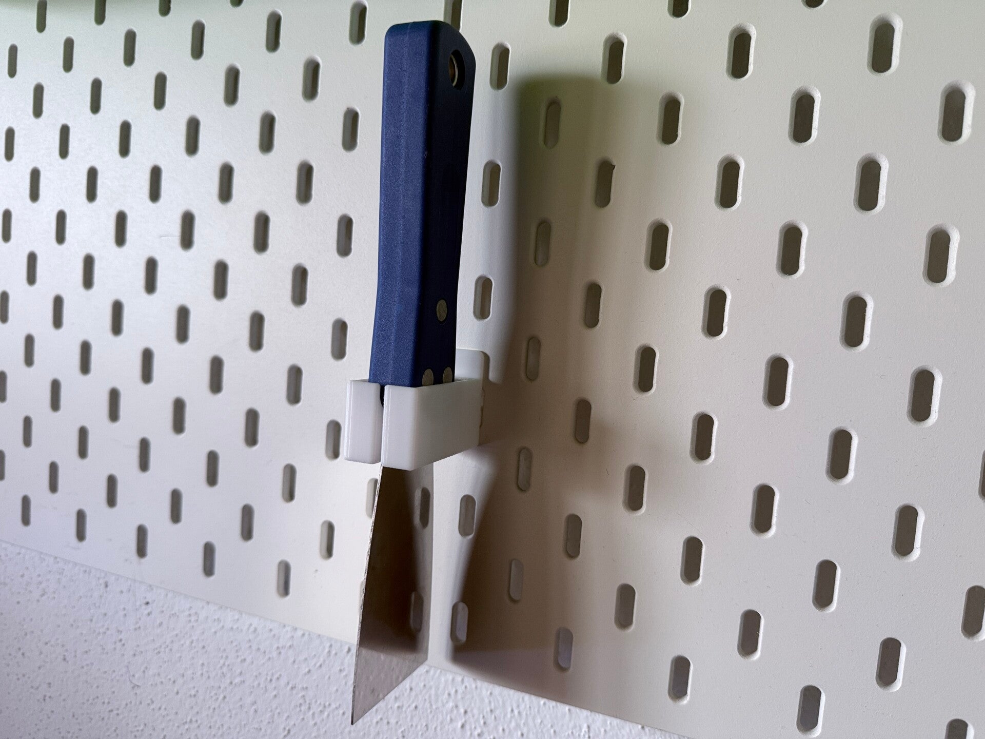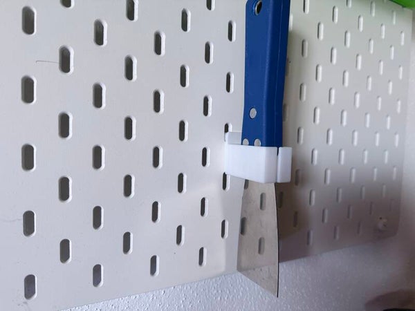 Mit dieser 3D-gedruckten Halterung für Spachtel kannst du deine Werkzeuge sauber und griffbereit an einer IKEA SKÅDIS Lochplatte aufbewahren.