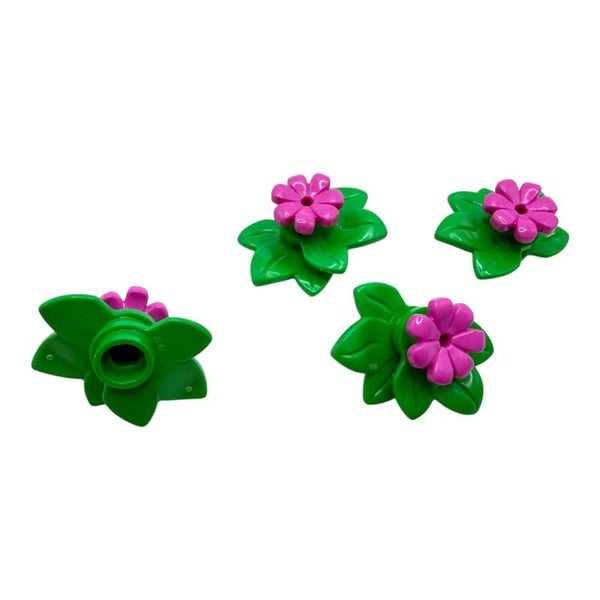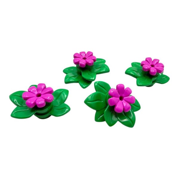 LEGO 4x Blume Rosa mit Blatt Grün Pflanze Flower MOC Zubehör Blüte Garten City