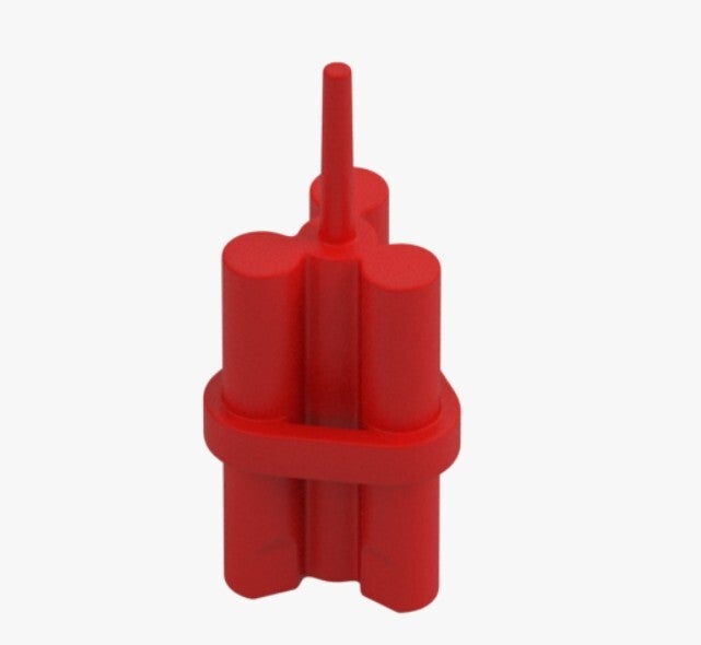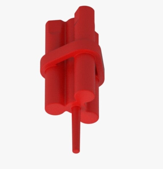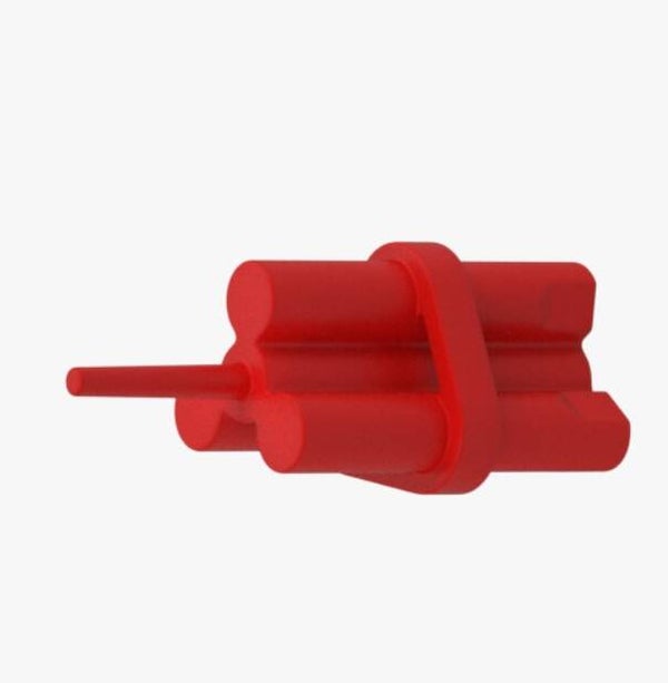 Dieses LEGO Zubehörteil stellt ein Bündel Dynamit dar und eignet sich perfekt für spannende Abenteuer- und Action-Szenen. Die typische rote Farbgebung sorgt für sofortige Wiedererkennbarkeit.