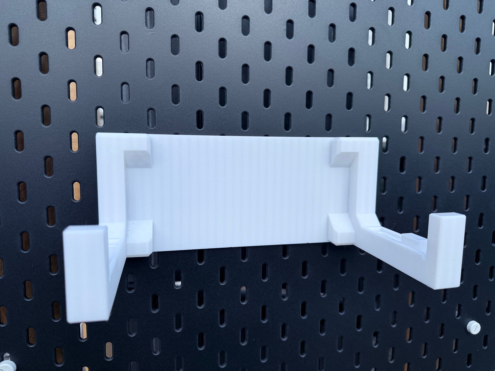 Die Halterung ist vollständig kompatibel mit dem IKEA Skadis Lochwand-System und lässt sich einfach einhängen – ganz ohne zusätzliche Adapter. Perfekt für strukturierte Arbeitsplätze, Werkstatt oder Technik-Ecken.
