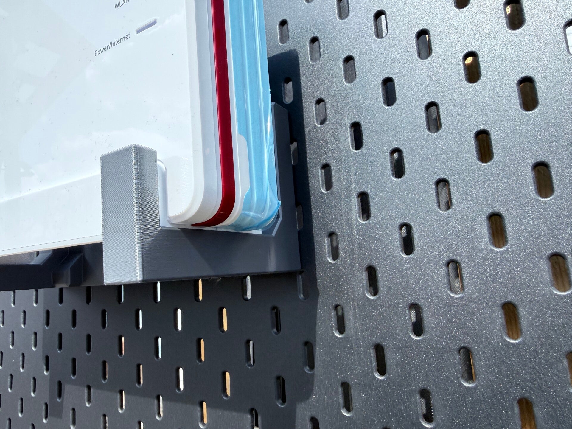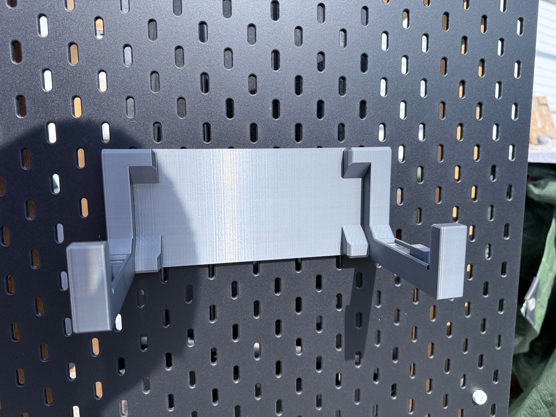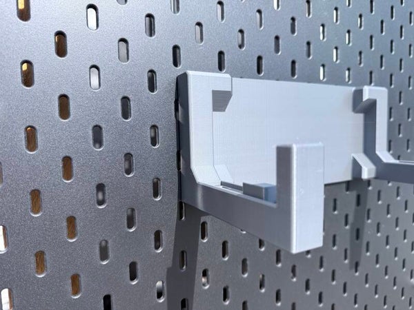 Die Halterung ist vollständig kompatibel mit dem IKEA Skadis Lochwand-System und lässt sich einfach einhängen – ganz ohne zusätzliche Adapter. Perfekt für strukturierte Arbeitsplätze, Werkstatt oder Technik-Ecken.